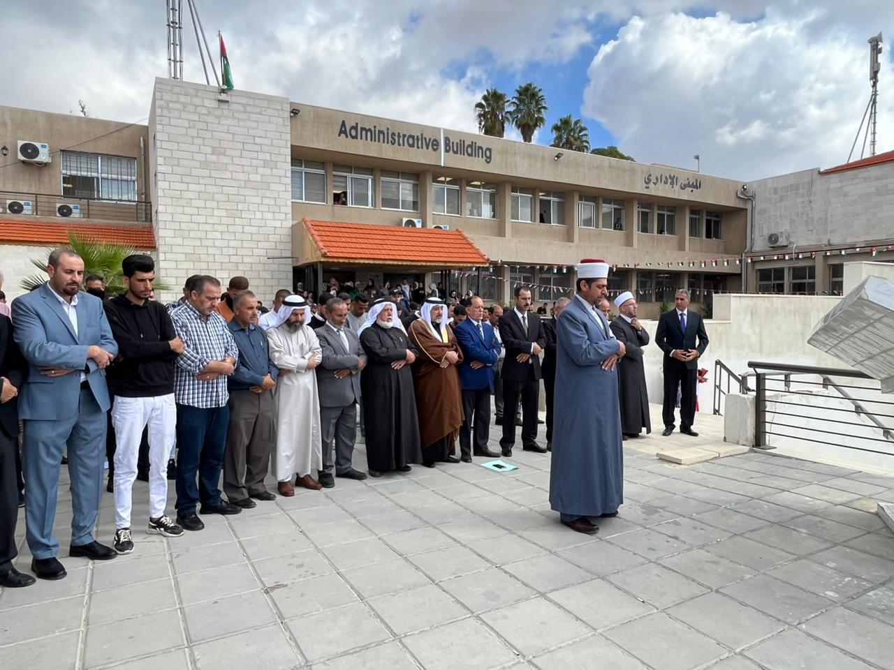 كلية عجلون الجامعية وعدد من المواطنين يؤدون صلاة الغائب على أرواح الشهداء في غزة