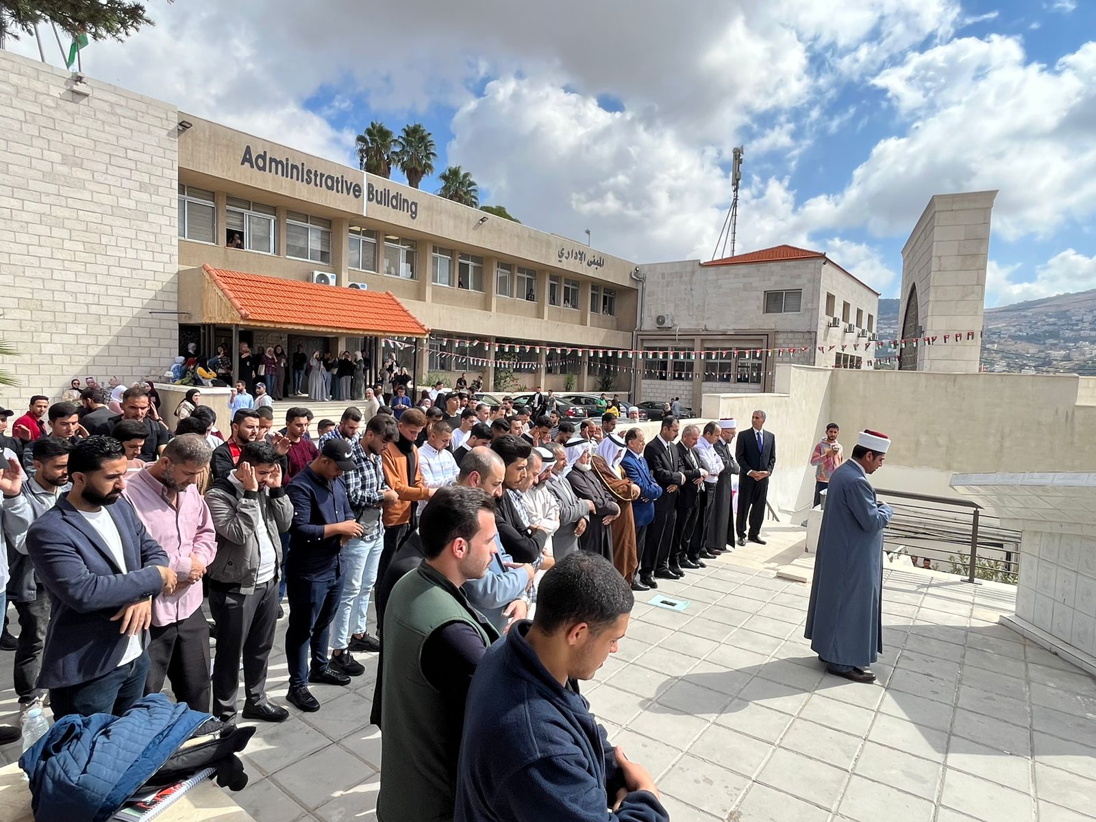 أدت أسرة كلية عجلون الجامعية / جامعة البلقاء التطبيقية اليوم الخميس وعدد من المواطنين صلاة الغائب على أرواح الشهداء الذين ارتقوا إلى ربهم نتيجة الاعمال الإجرامية التي نفذتها ايادي العدو الإسرائيلي ضد الشعب الفلسطيني المدافع عن حقه المشروع في ارضه ووجوده المغتصب ،من أمام ساحة إدارة الكلية بحضور المفتش العام لدائرة الأوقاف سماحة الشيخ الدكتور صفوان عضيبات وعدد كبير من أعضاء الهيئتين الأكاديمية والإدارية وطلبة الكلية .