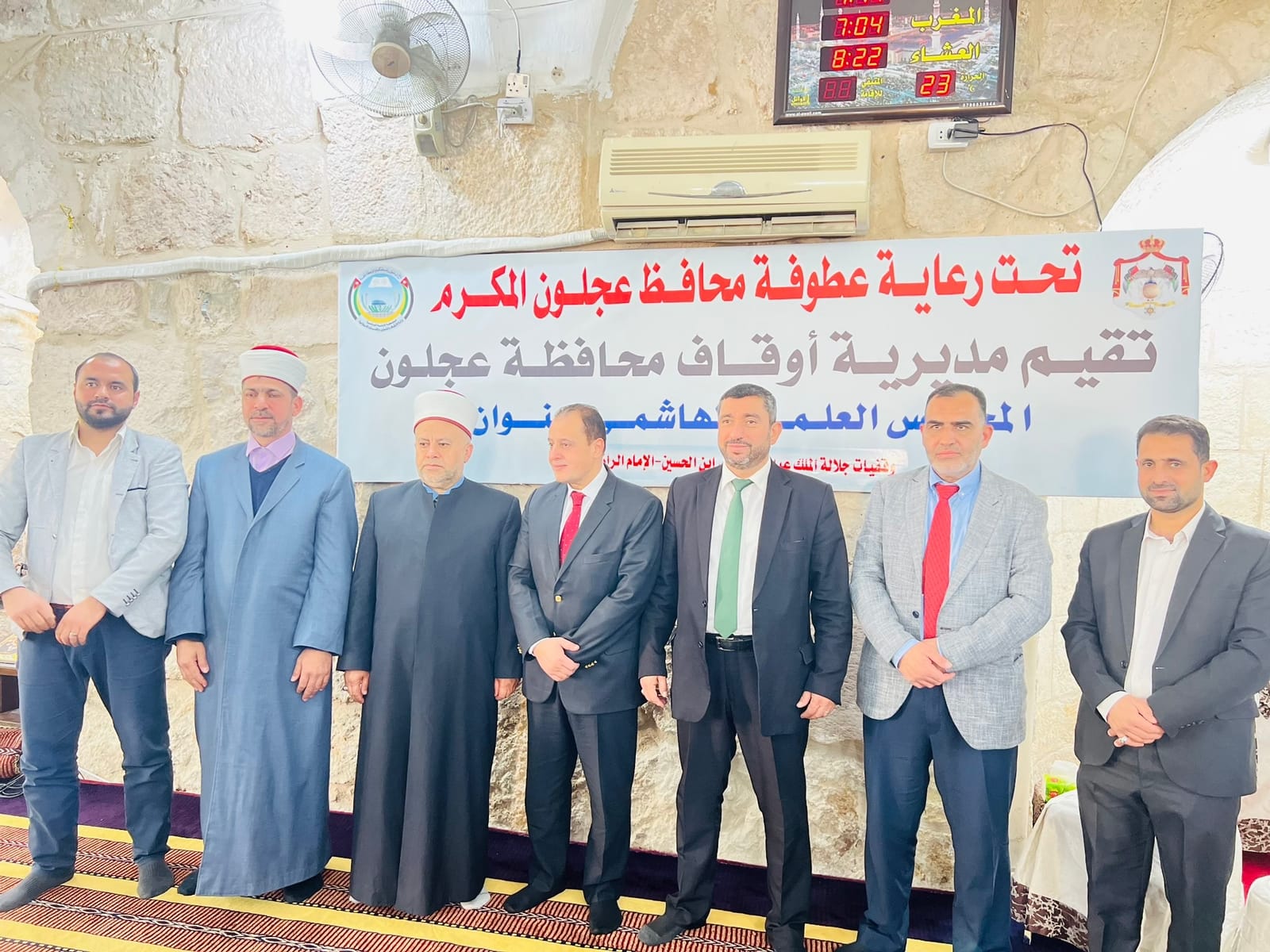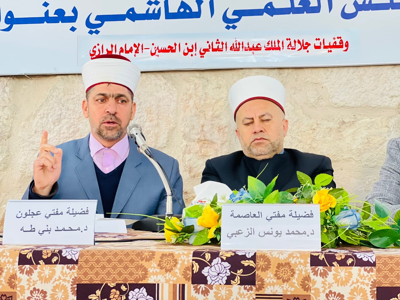 مندوبا عن محافظ محافظة عجلون رعى مساعد المحافظ الدكتور هاشم العبداللات المكرم وبحضور مدير مديرية أوقاف محافظة عجلون الدكتور أحمد محمود الصمادي وفضيلة مفتي العاصمة الدكتور محمد يونس الزعبي وفضيلة مفتي محافظة عجلون الدكتور محمد بني طه فعاليات المجلس العلمي الهاشمي الثاني بعنوان ” وقفيات جلالة الملك عبدالله الثاني بن الحسين – الإمام الرازي ” الذي اقامته مديرية اوقاف محافظة عجلون اليوم الثلاثاء في مسجد عجلون الكبير .
