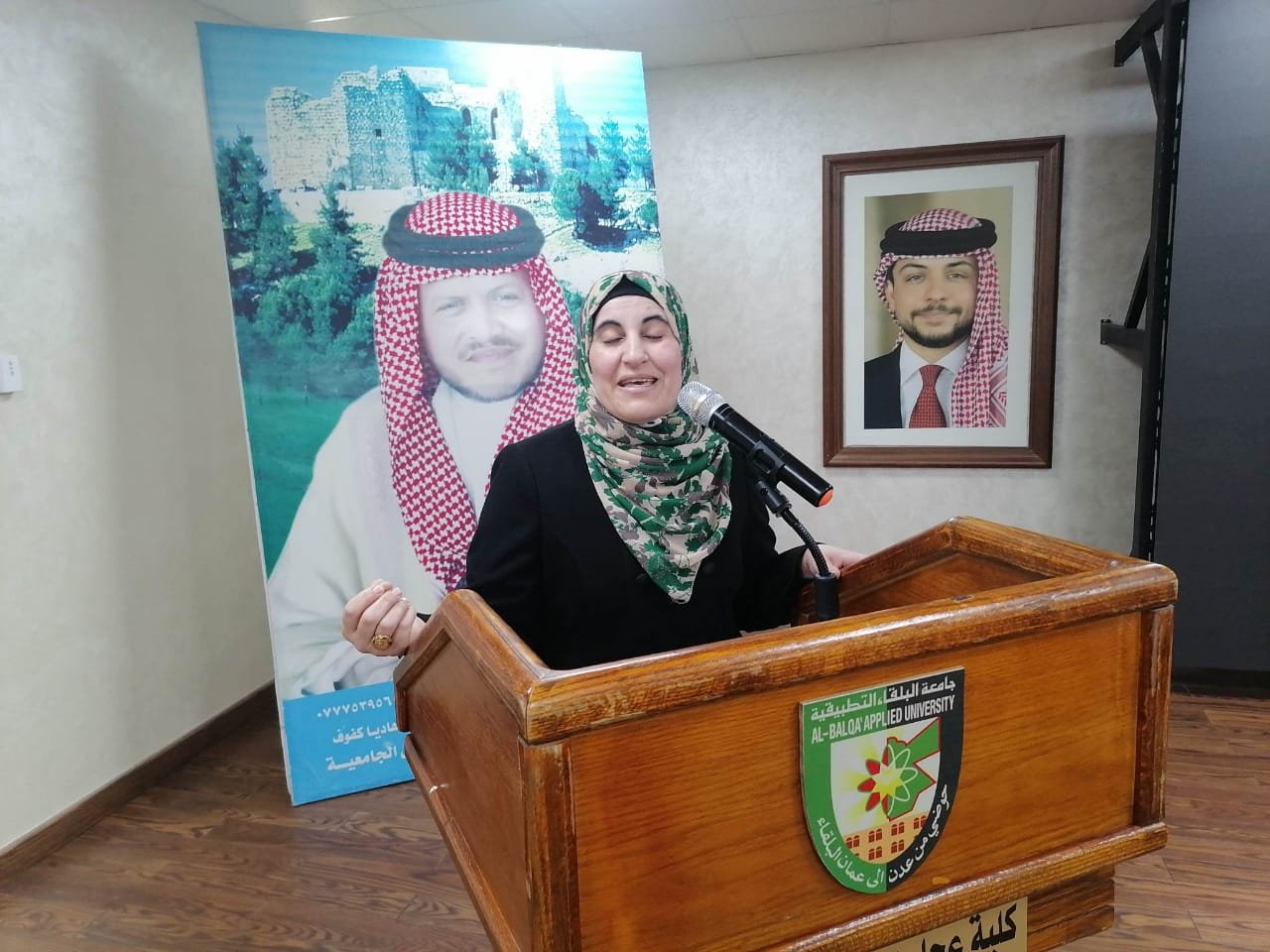 وقالت الدكتورة منتهى المومني مساعد العميد للشؤون الطلابية كلمة بمناسبة عيد الأم بينت فيها أهمية الأم وأن العالم العربي يحتفل بعيد الأم تكريما لها ولدورها الكبير في تربية الأجيال ولتأثيرها الكبير في المجتمع.