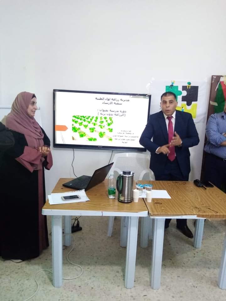 قدمت خلالها المهندسة وصفية ابو سمرة تحليل شامل لكيفية عمل زراعات متنوعة بدون إستخدام التربة وما تحتاجه تلك الزراعة حتى تنجح لتحقيق الغاية الإقتصادية من استعمالها والتي تعد مصدر دخل جيد من خلال استغلال مساحات زراعية صغيره جدا وتم تقديم العديد من الشروحات النظرية والعملية في هذا المجال.