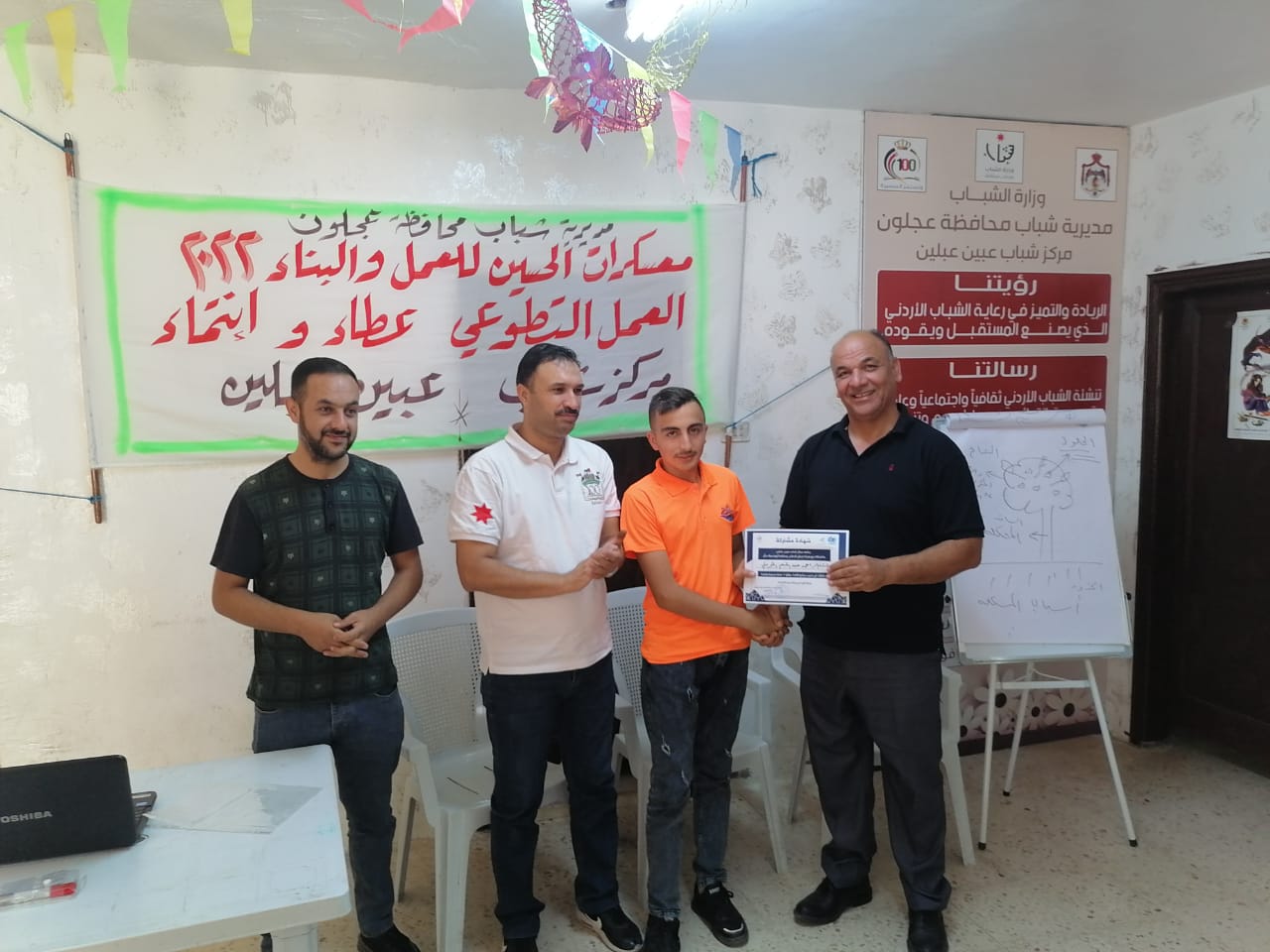 اختتم في مركز شباب عبين عبلين التابع لمديرية شباب عجلون ، فعاليات الدورة التدريبية حول مهارات القيادة الشبابية، بحضور مدير شباب عجلون بالوكالة صلاح القضاة شارك فيها 25 شاباً ضمن الفئة العمرية من 15_17 عاماً.