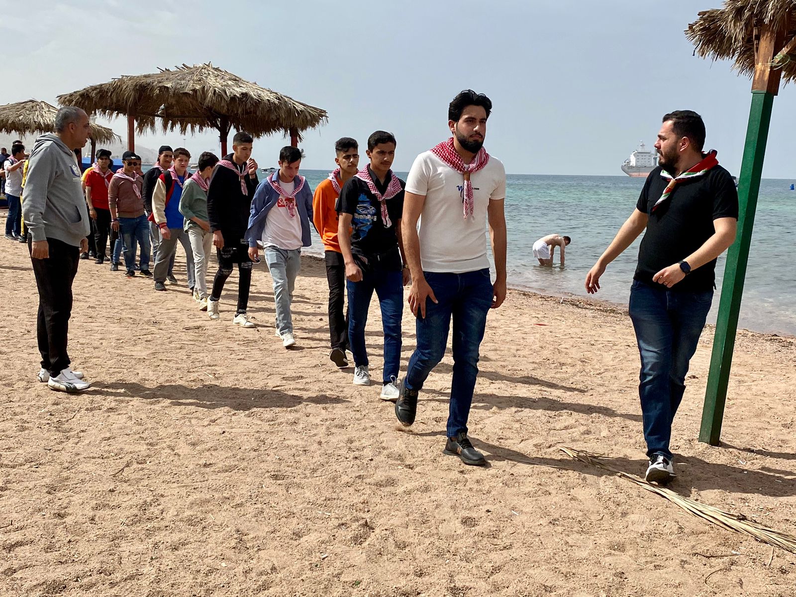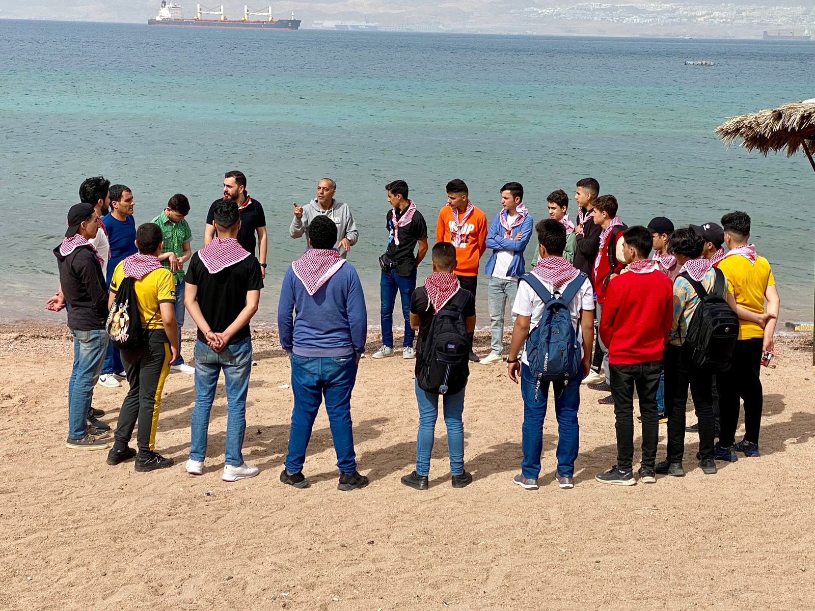 وفي ختام المعسكر نفذ المشاركون برفقة هيئة الاشراف مسير صحي على شاطئ العقبة ، وزيارة محطة الأحياء البحرية و مركز شباب العقبة .