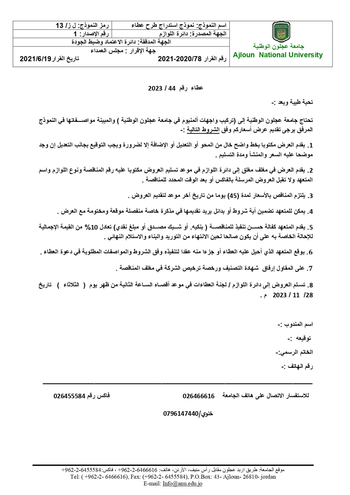 اعلان طرح عطاء /تركيب واجهات المنيوم في جامعة عجلون الوطنيةأخبار جامعة عجلون الوطنيةأخبار عجلونية في نوفمبر 21, 2023 أكمل القراءة شارك