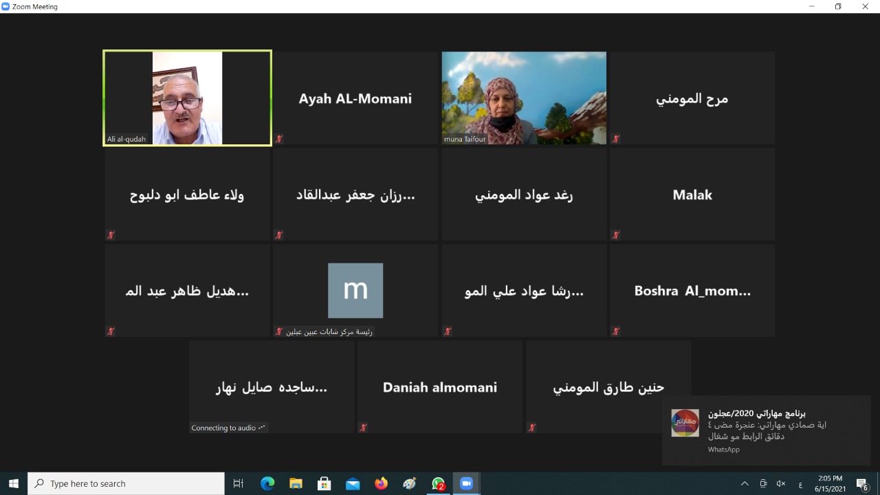 نظم مركز شابات عبلين عبلين محاضرة حول اساسيات التصوير الفوتوغرافي بمشاركة 20 شابة من اعضاء المركز عبر تطبيق الاتصال المرئي ZOOM .