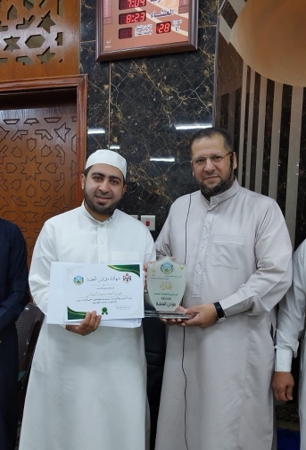 قام مدير اوقاف محافظة العقبة الشيخ فارس خلف الجـــــــــوازنة وبحضور رئيس قسم الموارد البشرية السيد ابراهيم الذنيبات والسيد ابراهيم النعامي من قسم المساجد في ليلة السابع والعشرين من رمضان بتكريم الفائز بالمركز الاول بمسابقة مؤذن العقبة الشيخ حمزة احمد المحاشي الذي يبلغ من العمر 25 عاما .