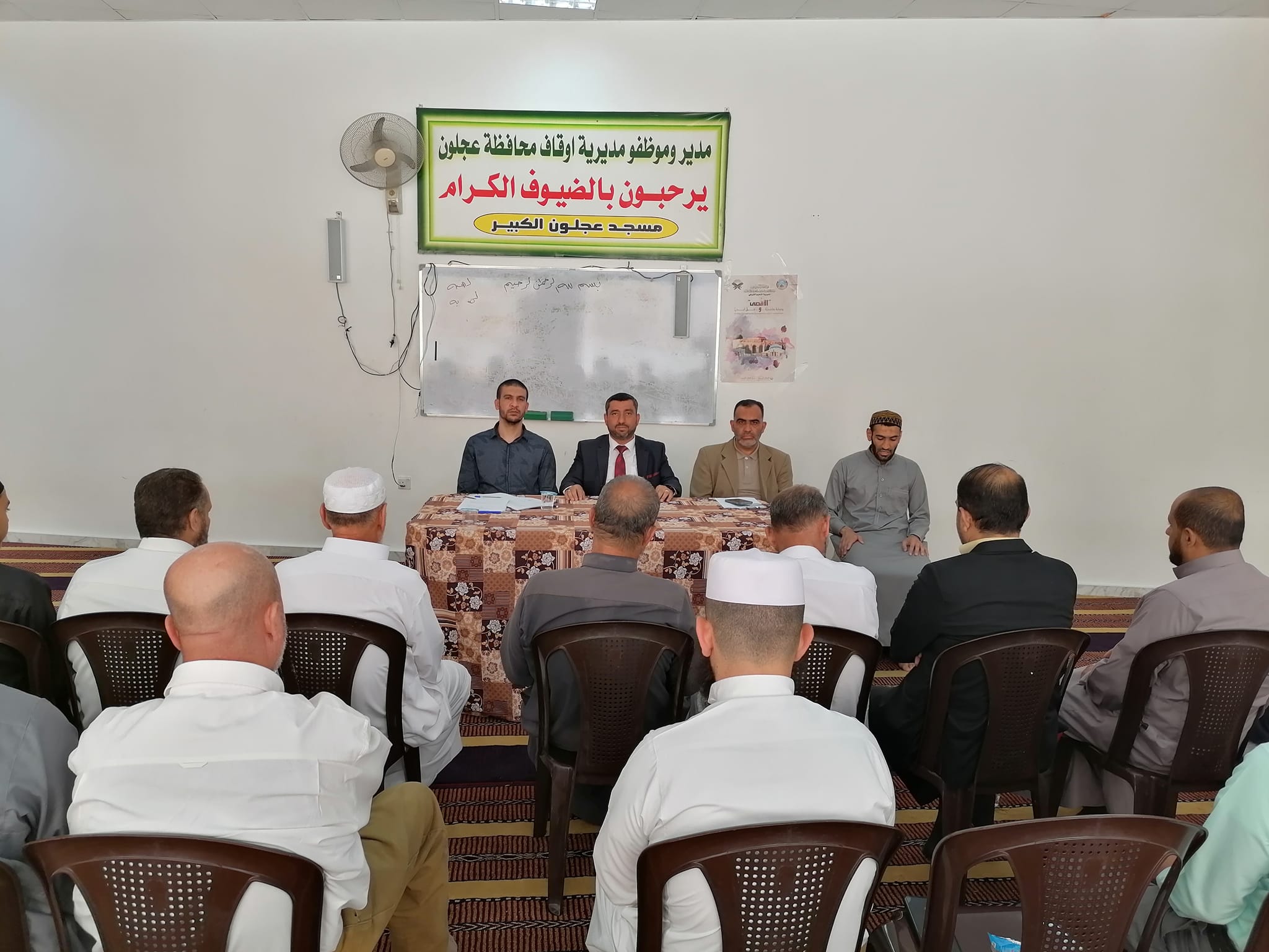 ترأس فضيلة الدكتور أحمد محمود الصمادي مدير مديرية أوقاف محافظة عجلون اجتماعا لمشرفي ومدرسي المراكز الصيفية لتحفيظ القرآن الكريم في قاعة مسجد عجلون الكبير اليوم الإثنين، وبحضور أعضاء اللجنة المشرفة مساعد المدير لشؤون الوعظ والإرشاد ورئيس قسم دور القرآن الكريم.
