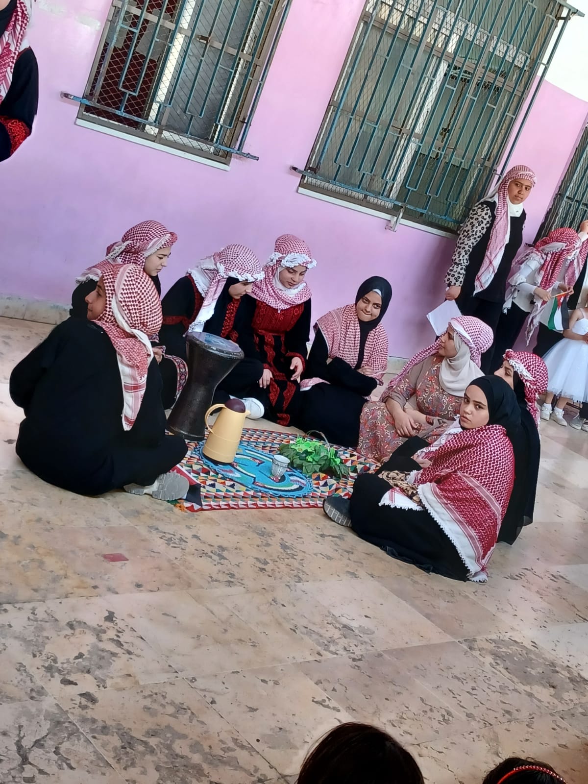 واشتمل الإحتفال على عدة كلمات وقصائد شعرية وأهازيج ودبكات شعبية وفقرة الرسم بالحناء قدمها طلبة المدرسة الذين ارتدوا الزي الشعبي، فيما شارك المجتمع المحلي بتوزيع الحلوى وتقديم الضيافة بهذه المناسبة السعيدة.