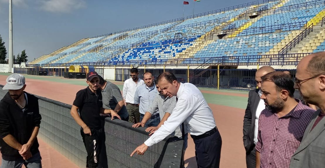 وجال العزام برفقة موظفي الأقسام ذات العلاقة على كافة أروقة وأرضية ستاد المدينة، متخذاً إجراءات فورية لمعالجة عدد من الاختلالات، للسير باعمال الصيانة على قدمٍ وساق وبوتيرة عالية مع الزراعة العلاجية لأرضية الستاد التي تمت أمس الاحد .