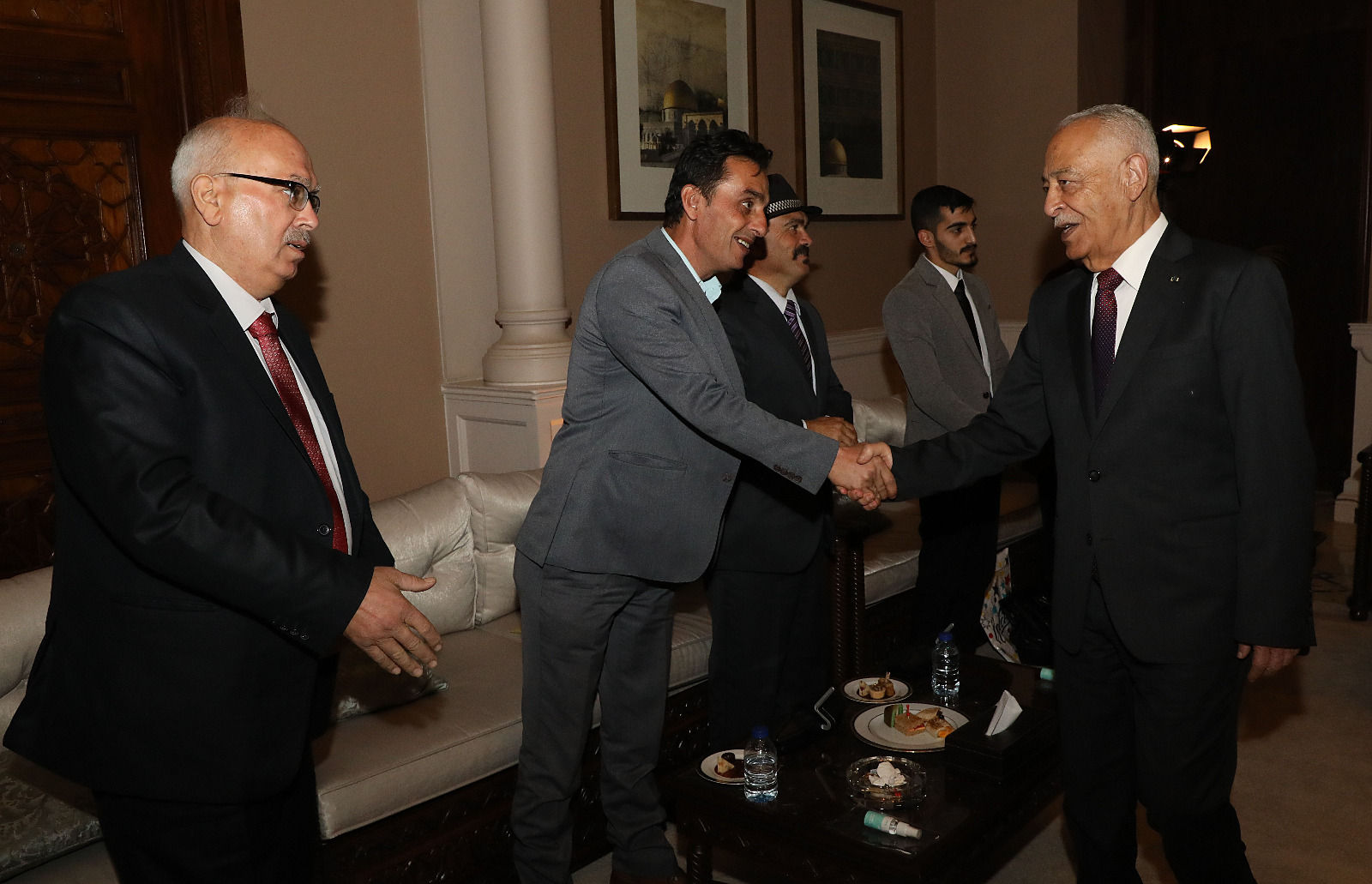بتوجيهات ملكية، التقى رئيس الديوان الملكي الهاشمي، رئيس لجنة متابعة تنفيذ مبادرات جلالة الملك، يوسف حسن العيسوي، الجمعة، المشاركين في معرض المنتجات الحرفية في الموقع الأثري بمحافظة جرش، لمتابعة الطلبات والمقترحات التي طرحوها خلال زيارة جلالة الملك عبدالله الثاني، وسمو الأمير الحسين بن عبدالله الثاني، ولي العهد، إلى المحافظة الأربعاء الماضي.