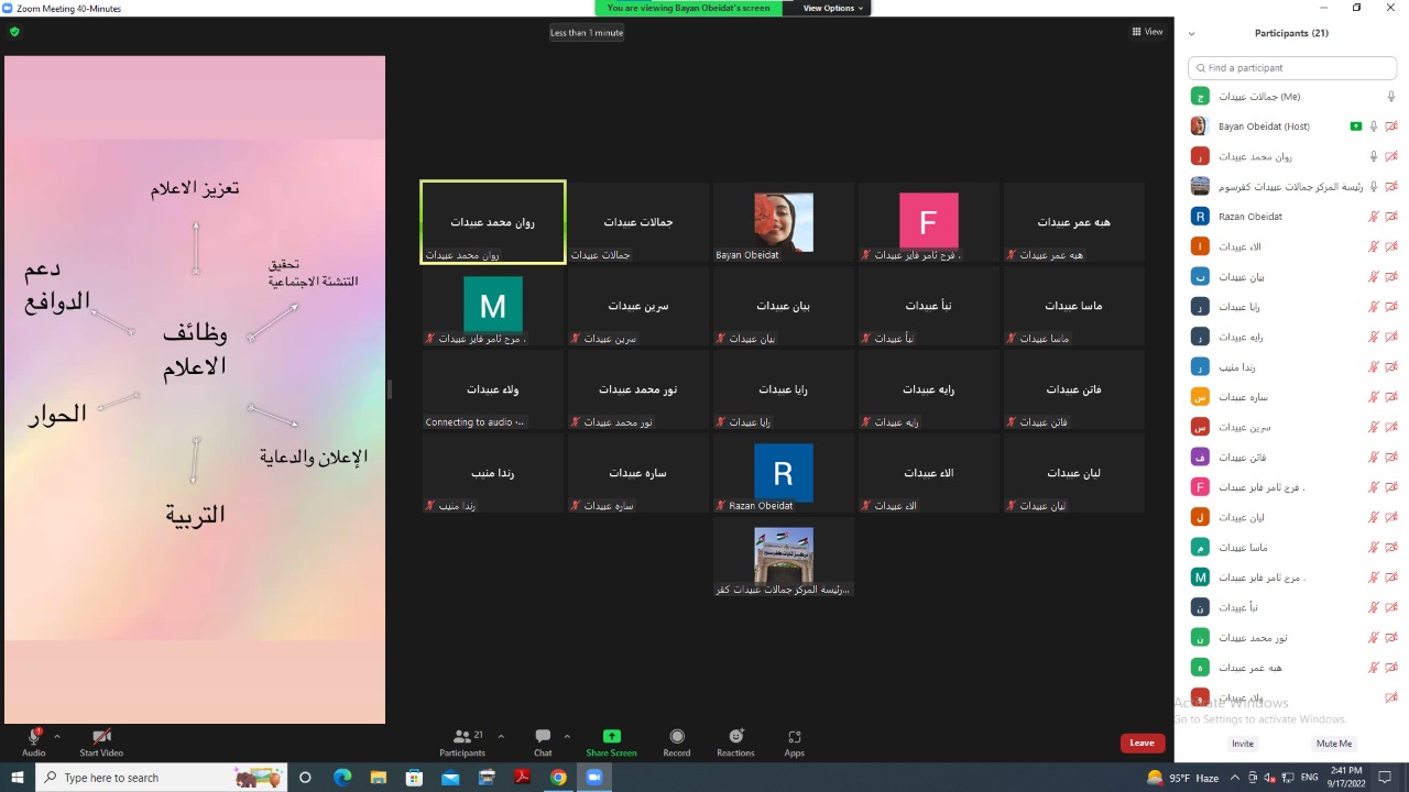 كما وعقد مركز شابات كفرسوم ، ورشة تحت عنوان التربية الاعلامية الشبابية عبر تطبيق زووم ،وذلك بتقديم المحاضرة بيان عبيدات حيث تضمنت الورشة التعريف العام لمصطلح الإعلام ووسائله وتأثيره على المجتمع، ودوره في التأثير على الشخصية التربوية ، بالاضافة الى وظائف الاعلام وايجابيات وسلبيات وسائله وطرق إنجاح الرسالة الإعلامية وشروطها واهمية الإعلام على المستوى الشخصي .