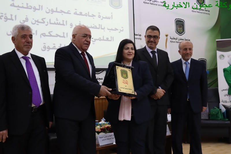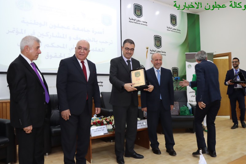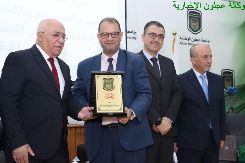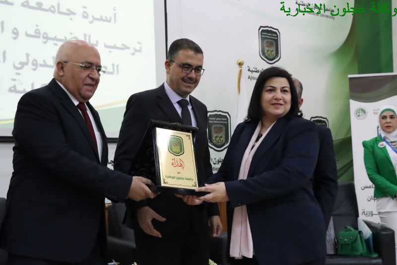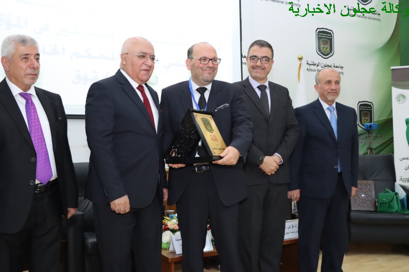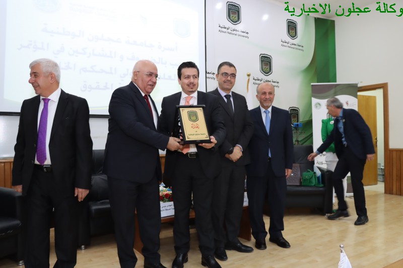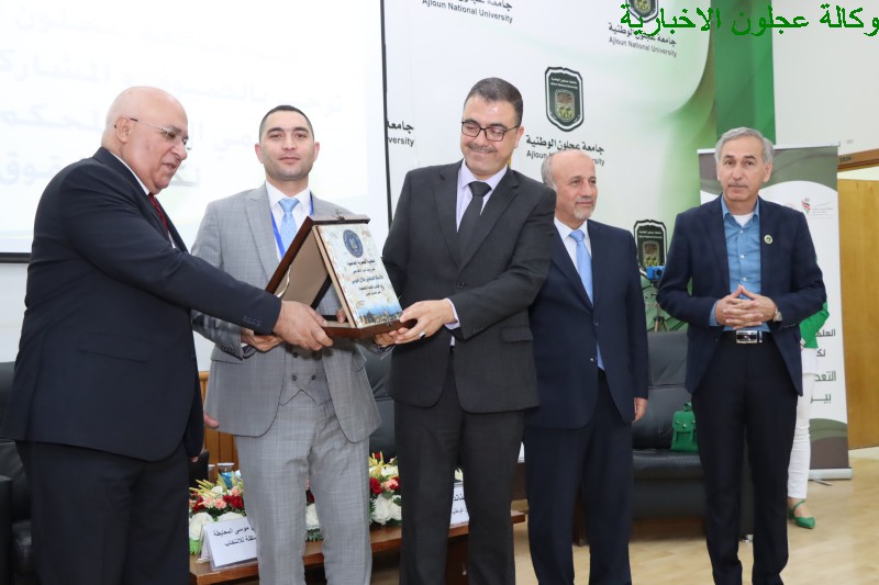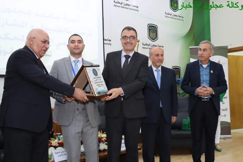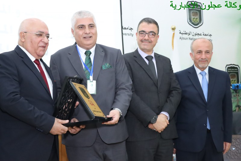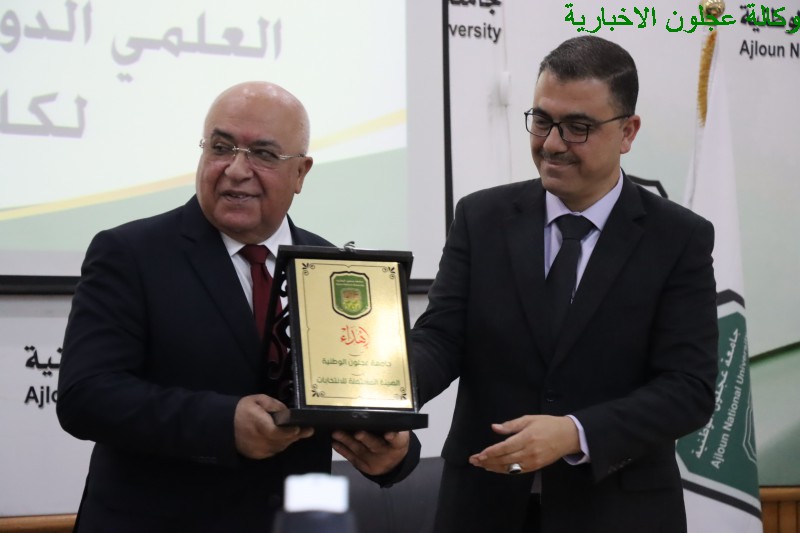 وفي نهاية الجلسة الإفتتاحية قدم راعي الحفل ورئيس الجامعة ورئيس مجلس الأمناء دروع المؤتمر للجهات الداعمة ، كما قامت جامعة عجلون الوطنية بتقديم درع لراعي المؤتمر المهندس موسى المعايطة.
