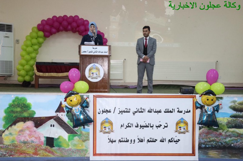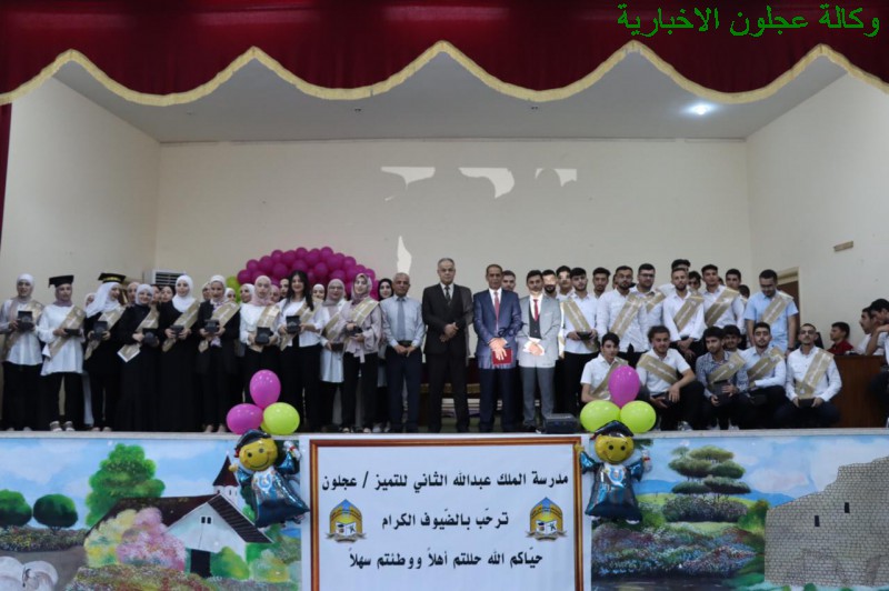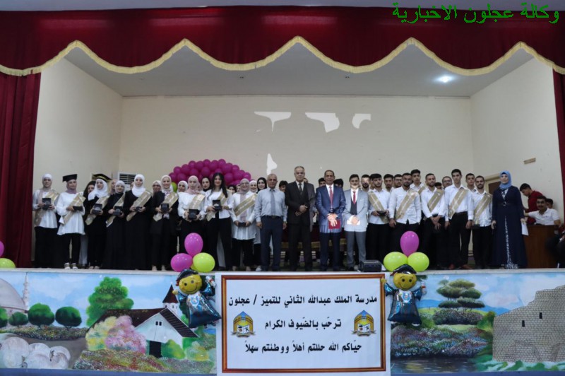 عجلون الإخبارية : رعى مدير تربية عجلون الأستاذ أحمد فايز الملكاوي الإحتفال الذي أقامته مدرسة الملك عبدالله الثاني للتميز لتخريج الفوج العاشر  من طلبة الثانوية العامة والبالغ عددهم 59 طالب وطالبه  وذلك  بحضور المدير الإداري الأستاذ محمد المصري ومدير الأحوال المدنية جهاد القضاه  ومدير الرقابة  الداخلية في التربية الدكتور أمجد القضاه   ومدير المدرسة الأستاذ حسين المومني  والناطق الإعلامي بإسم مجلس محافظة عجلون منذر الزغول  ونائب  رئيس بلدية عجلون الكبرى معتصم الصمادي وفعاليات تربوية وشعبية مختلفة وأولياء الأمور .