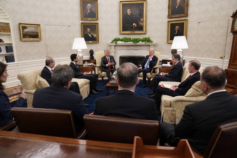 وأعرب الرئيس بايدن عن تقديره للدور القيادي المهم لجلالة الملك في الشرق الأوسط، وقال “أنتم وسط منطقة صعبة، وأتطلع للاستماع من جلالته عن التحديات التي يواجهها الأردن، وسنستمر بتوطيد التعاون الثنائي بيننا”.