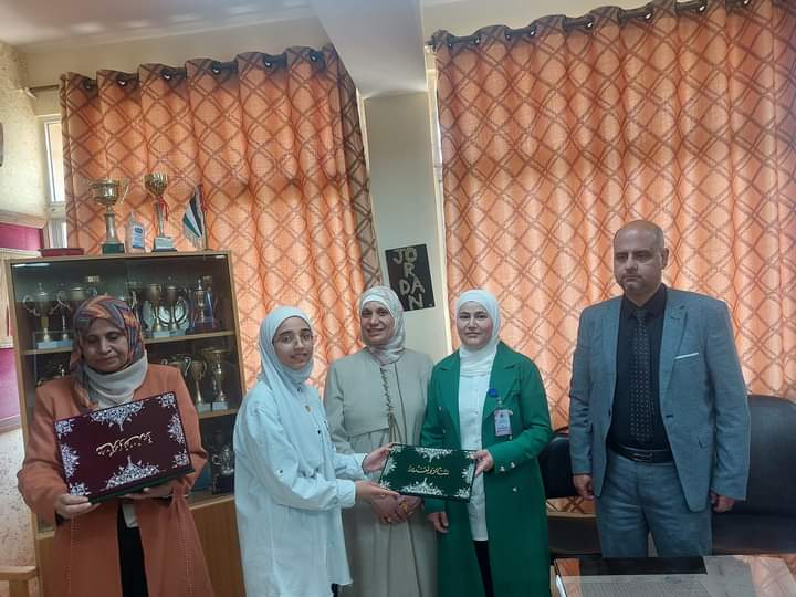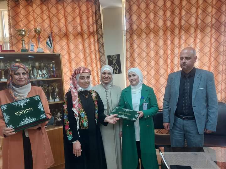 كرمت مدير الشؤون الادارية والمالية في مديرية التربية والتعليم صبحه المومني مندوبا عن مدير التربية اسعد الشرع بحضور رئيس قسم الرقابة الداخلية رامي عناب ومديرة المدرسة ختام الصمادي طالبتين حافظتين للقرآن الكريم في مدرسة عجلون الثانوية للبنات وهما راما أشرف الصمادي وروعة يزن الصمادي