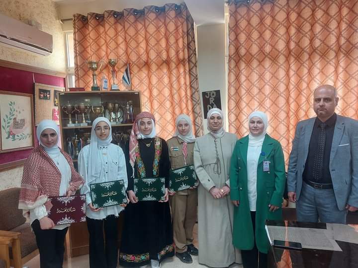 وثمنت المومني جهود الطالبات وحرصهن على التميز والإبداع كما اهتمام وزارة التربية والمديرية بمشاركة الطلبة في جميع المناشط التربوية كما قدرة المومني دور واهتمام إدارة المدرسة بتحفيز الطالبات وتشجيعهن على ممارسة الانشطة المختلفة .