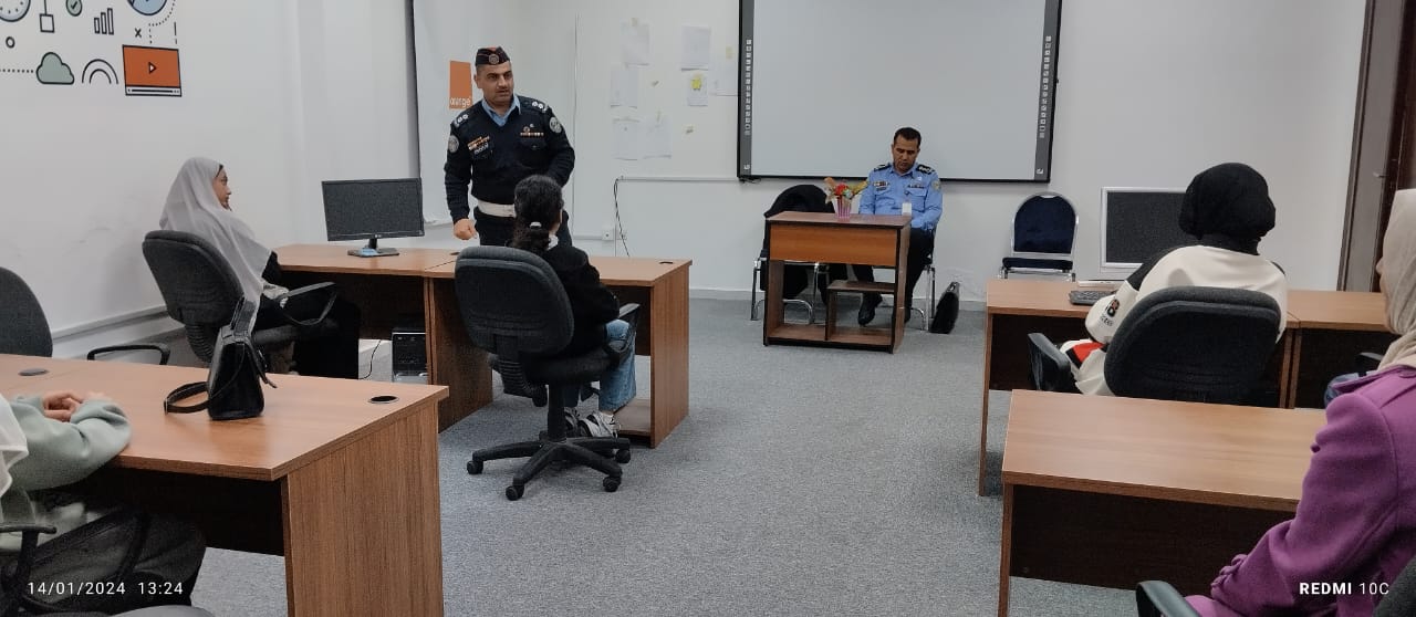 وأشار الملازم بدر فريحات أن الدورة ستستمر لمدة ٣ أيام، وتشتمل على محاضرات حول المخاطر المترتبة عن حوادث السير النفسية والاجتماعية وهدر الأموال والممتلكات ، ورفع مستوى التوعية المرورية لدى الجميع، وتوضيح مفهوم الشرطة المجتمعية ، والجرائم الإلكترونية والاستخدام الآمن لمواقع التواصل الاجتماعي وآفة المخدرات .