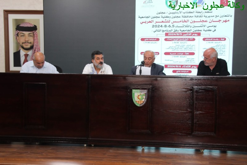 عجلون الإخبارية: بتنظيم من رابطة الكتاب الأردنيين فرع عجلون و بالتعاون مع مديرية ثقافة محافظة عجلون وكلية عجلون الجامعية إنطلقت اليوم الإثنين فعاليات “مهرجان عجلون الخامس للشعر العربي” بمشاركة نخبة من الشعراء الأردنيين، حيث يحتفي المهرجان هذا العام بالشاعر العربي محمد عبدالله البريكي شخصية المهرجان.