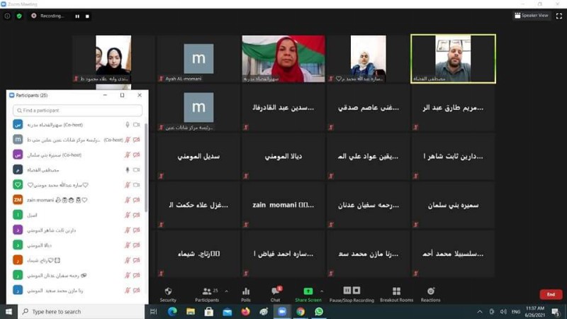 كما ونفذ مركز شباب صخرة ورشة حوارية بعنوان “التلوث البيئي وأضراره” بمشاركة 20 شابا عبر تطبيق زووم