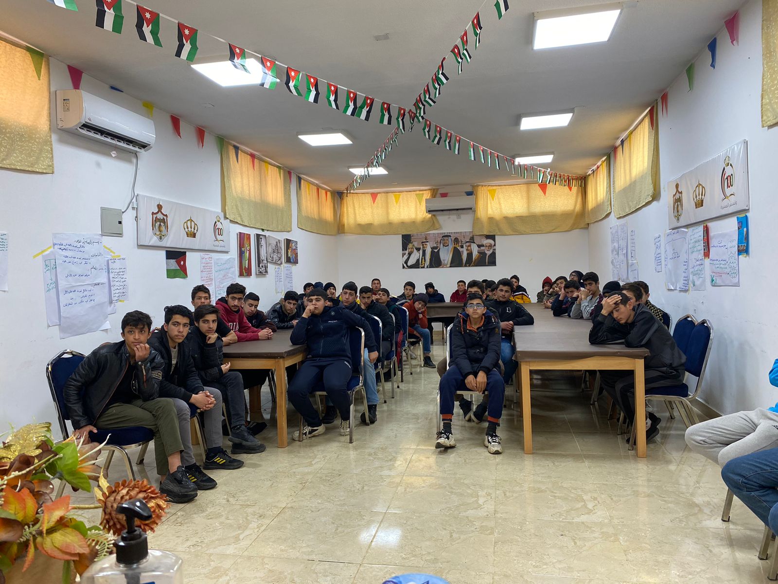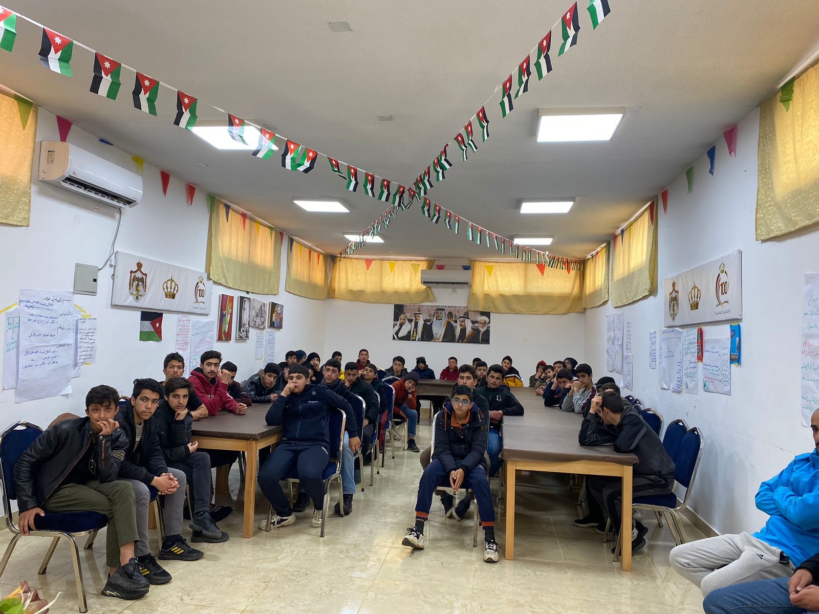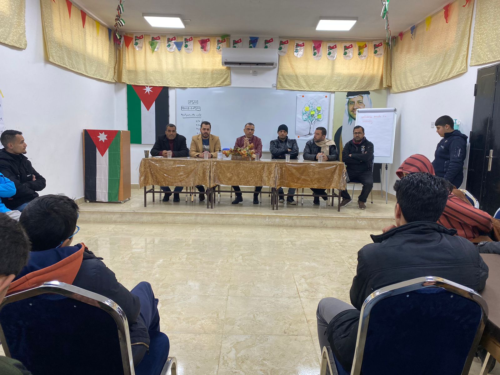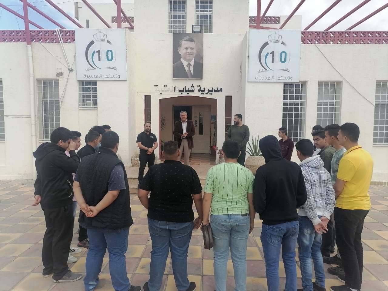 ولقاء المشاركين برئيس قسم الشؤون الشبابية سلطان الرواشده والذي بدروه تحدث عن دور الشباب في تعزيز الولاء والانتماء للوطن والقائد.