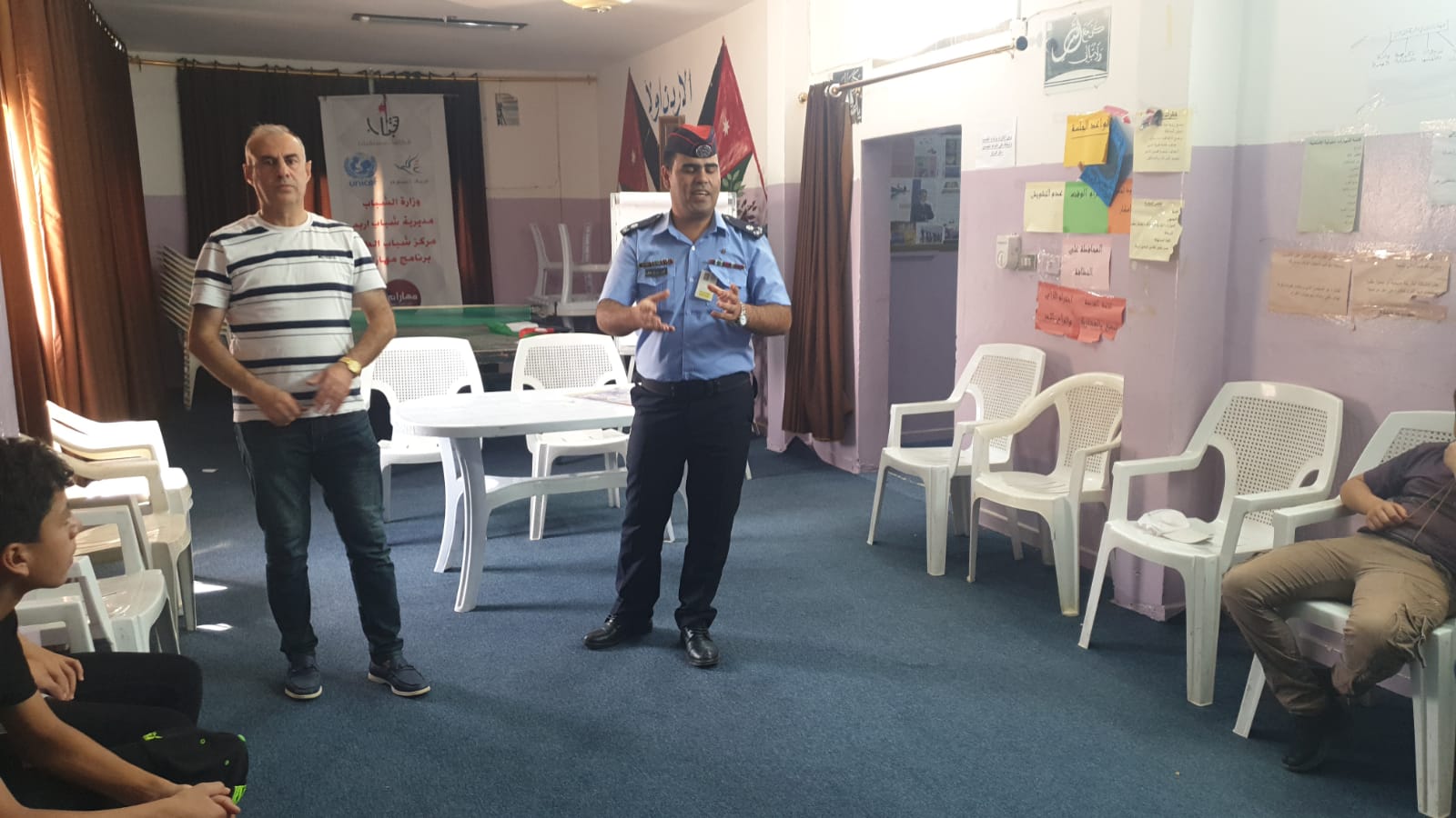 حيث تمت استضافة الملازم أنور الحمزه والملازم لورنس عبيدات وفي بداية الندوه تم الترحيب بافراد جهاز الأمن العام من قبل الأعضاء ورئيس المركز حيث تحدث الملازم أنور حول واجبات الامن العام بشكل عام لحماية الافراد وبعدها تحدث الملازم لورنس عبيدات عن مفهوم الامن السيبراني وأمن المعلومات وأمن الحاسب وهو فرع من فروع التكنولوجيا الذي يهتم بحماية الانظمة والممتلكات والشبكات والب امج من الهجمات الرقمية وفي نهاية الندوة تم شكر المحاضرتين وتم طرح عدة أسئلة من قبل المشاركين و الإجابة عليها بشكل وافي ودقيق .