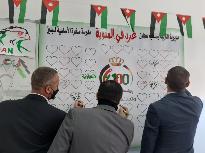 ويشار إلى أن جميع مدارس مديرية التربية والتعليم نشرت عبر مواقع التواصل الاجتماعي فيديوهات وطنية احتفاء بمئوية الدولة الأردنية ويوم العلم .