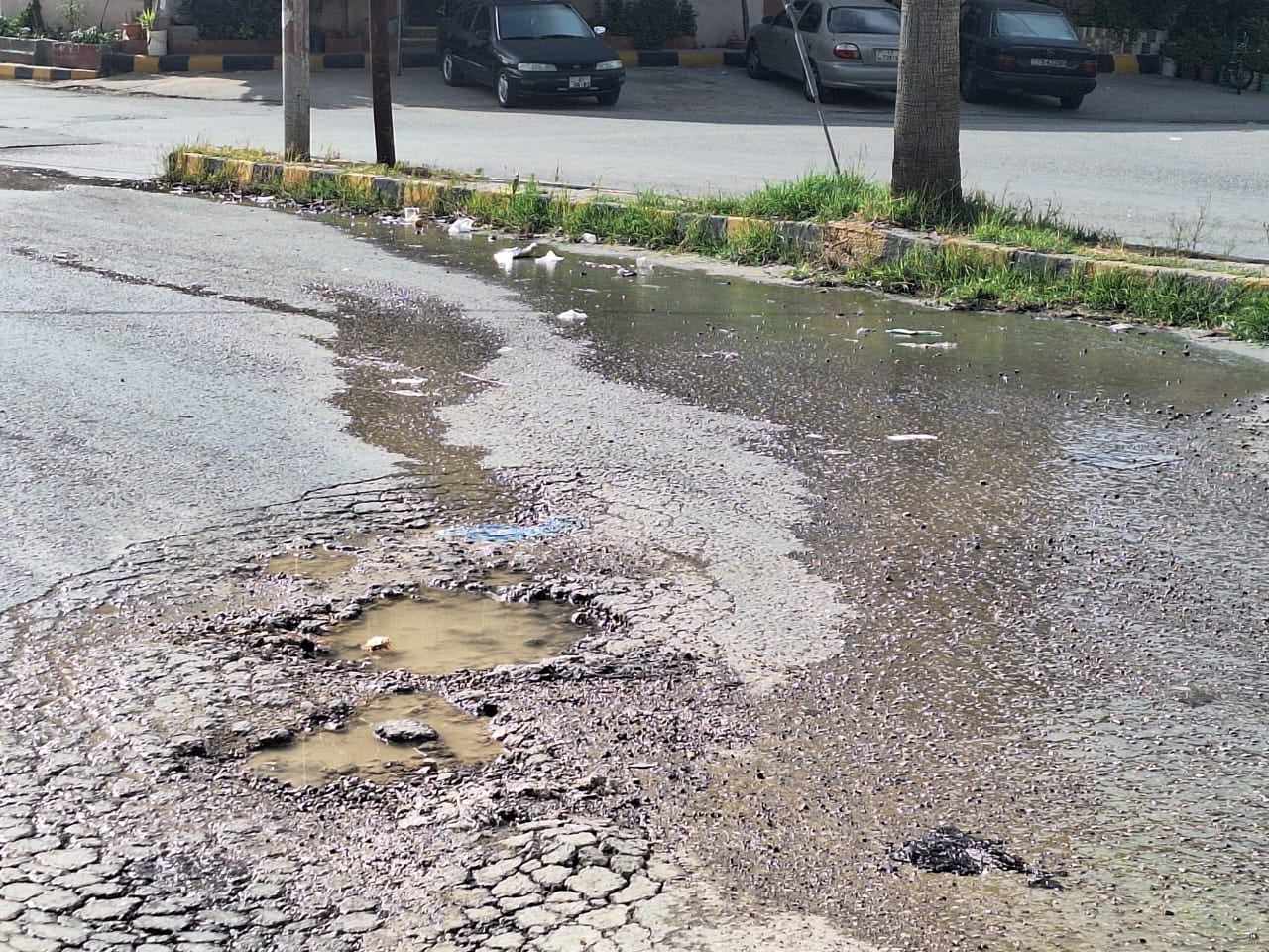 وقالوا نلمس عدم جدية من إدارة المياه وعدم تعاون مع البلدية في معالجة تدفق المياه والحفاظ على جسم الشارع الذي تسطح بسبب المياة .