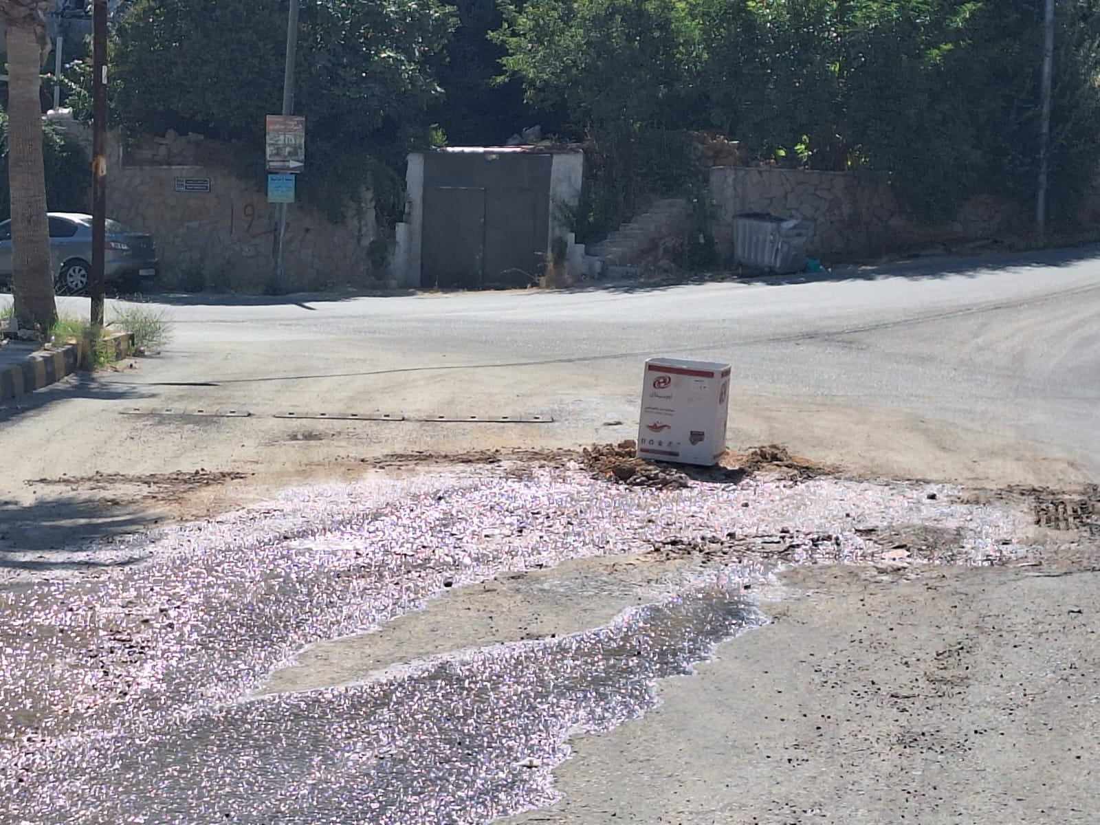 منذ ثلاثة أشهر ونيف والمياه تتسرب من خط للمياه بشارع رئيس في بلدة عين جنا جانب محطة المياة مباشرة ورغم أن إدارة مياه عحلون قامت بحفر الموقع الا ان الامر لم يغير شيئا وبقي الحال على ما هو عليه والمياه تنزف من الخط على الشارع الرئيس محدثة اضرارا على عابري الشارع بسبب تناثر المياه على المواطنين من المركبات