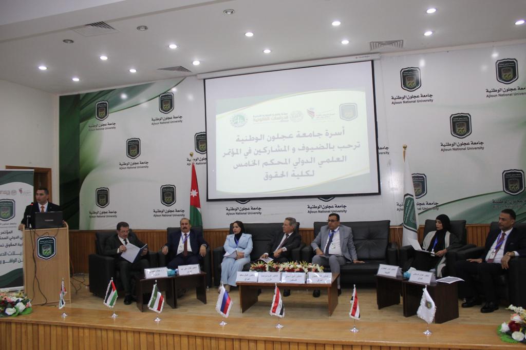 رفع المشاركون بالمؤتمر العلمي المحكم الدولي الخامس الذي نظمته كلية الحقوق في جامعة عجلون الوطنية تحت عنوان ” التعديلات الدستورية بين الواقع والطموح ” في ختام مؤتمرهم برقية شكر وتقدير الى جلالة الملك عبد الله الثاني اعربوا فيها عن اعتزازهم بالجهود التي بذلها ويبذلها جلالته في التحديث السياسي والاقتصادي والإداري بغية ازدهار الاردن العزيز وعلى دور الأردن الريادي إقليميا ودوليا بقيادة جلالته في المساهمة بتعزيز وترسيخ الامن والسلام العالمي وعلى حسن الاستضافة التي تعبر عن الاردن الأصيل ، كما رفع المشاركون بالمؤتمر الشكر للهيئة المستقلة للانتخابات على دورها الفاعل .
