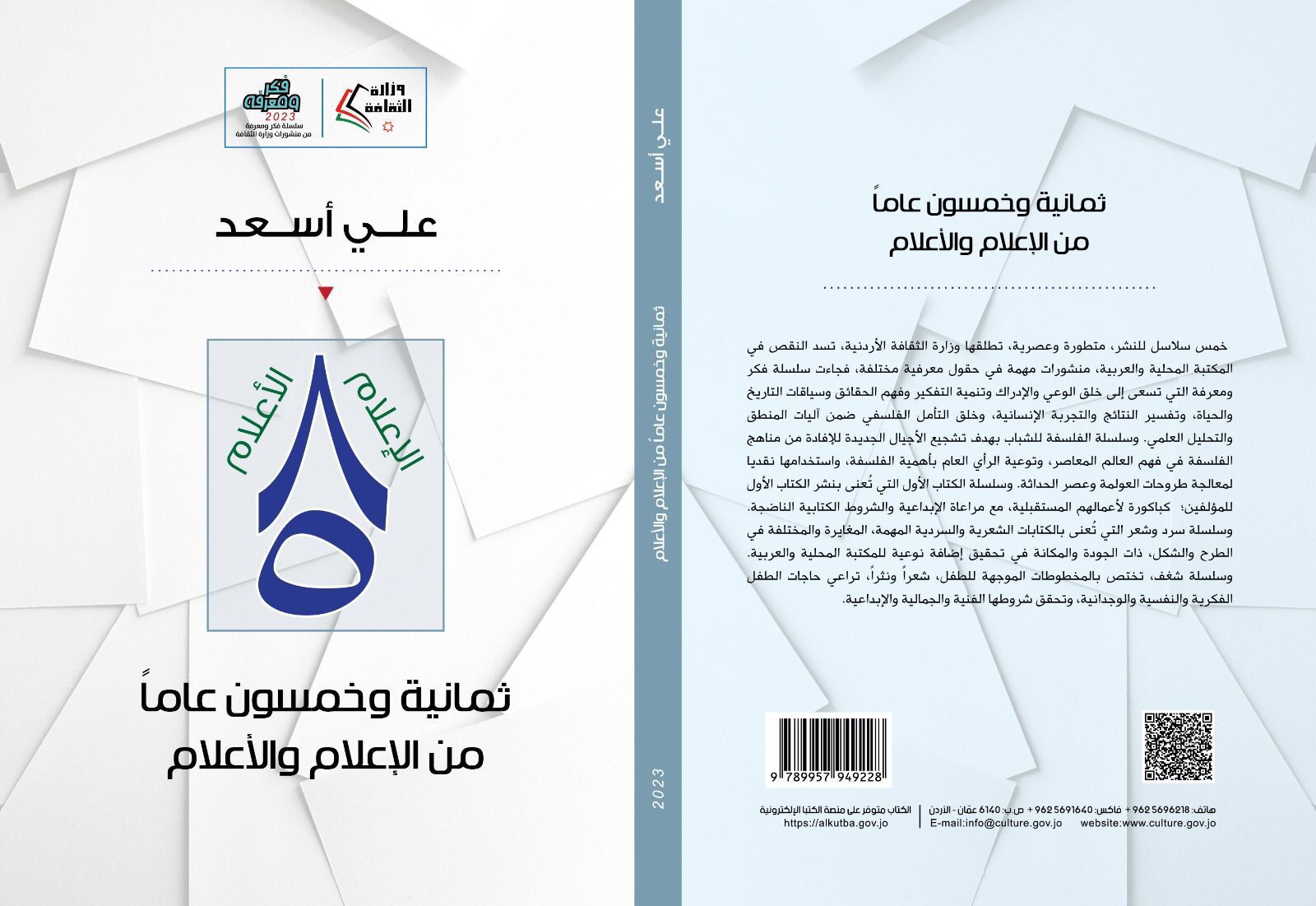صدر عن وزارة الثقافة الاردنية كتاب للإعلامي المدرّب المعروف علي أسعد ، وذلك ضمن منشورات الفكر والثقافه، تحت عنوان ( ثمانية وخمسون عاماً من الإعلام والأعلام ) ينقل فيه الخبرة والمعرفة المتراكمة حول اساسيات العمل الإعلامي للجيل الصاعد في العصر الرقمي حيث المبادئ والركائز ثابتةٌ وإن اختلفت الطرق بين الأمس القريب واليوم المتحرك ، حيث ينقل الكاتب ُ القارئَ الى دوراته التدريبية التي تنقّل فيها في معظم العواصم العربية يحمل فيها زوّادته من ال Pour point presentation وفي هذا الحيّز التعليمي من الكتاب يتوجه الى الناطقين بأسماء دولهم وشركاتهم ومؤسساتهم، ليرشدهم كيف يواجهون الصحافة بأشكالها المختلفه في تدريبٍ يصفه المدرب بأنه مواجهة ناعمة لمتضادْين