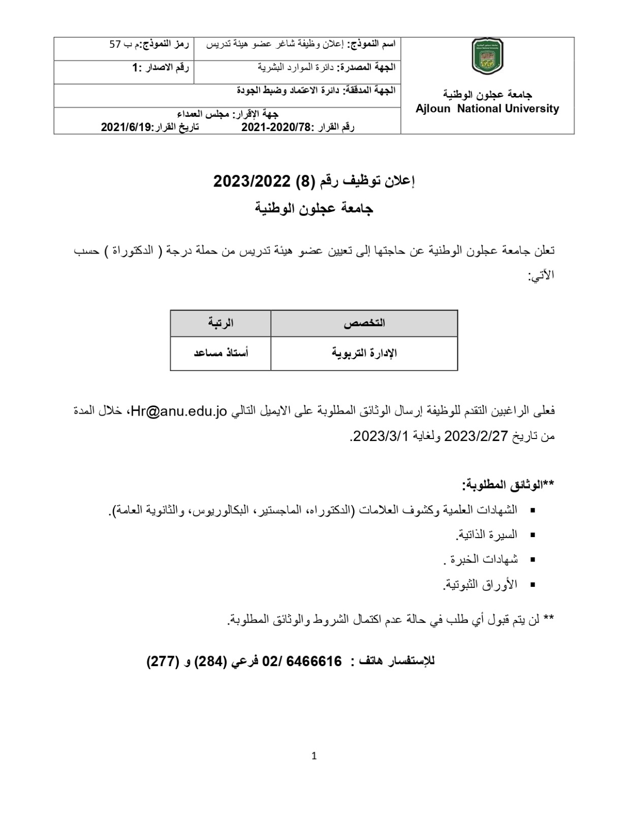 جامعة عجلون الوطنية تعلن عن حاجتها لتعيين هيئة تدريس من حملة الدكتوراةأخبار جامعة عجلون الوطنيةأخبار عجلونية في فبراير 27, 2023 أكمل القراءة شارك