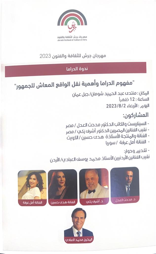 جرش : ندوة بعنوان “مفهوم الدراما وأهمية نقل الواقع المعاش للجمهور” .أخبار ثقافية وفنية في أغسطس 1, 2023 أكمل القراءة شارك