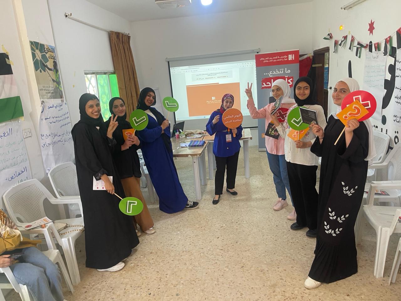 نفذ مركز شابات الطيبة بالتعاون مع مؤسسة الحسين للسرطان جلسة تفاعلية توعوية ضمن حملة “ما تنخدع … كلّه واحد في إربد بمشاركة 15 شابة ضمن الفئة العمرية 18-24 عام .