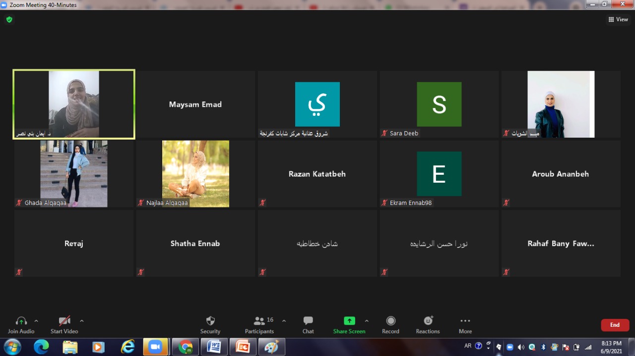 نفذ مركز شابات كفرنجة النموذجي جلسة حوارية صحية حول “أهمية تلقي مطعوم فايروس كورونا ” بمشاركة 20 شابة عبر تطبيق زووم