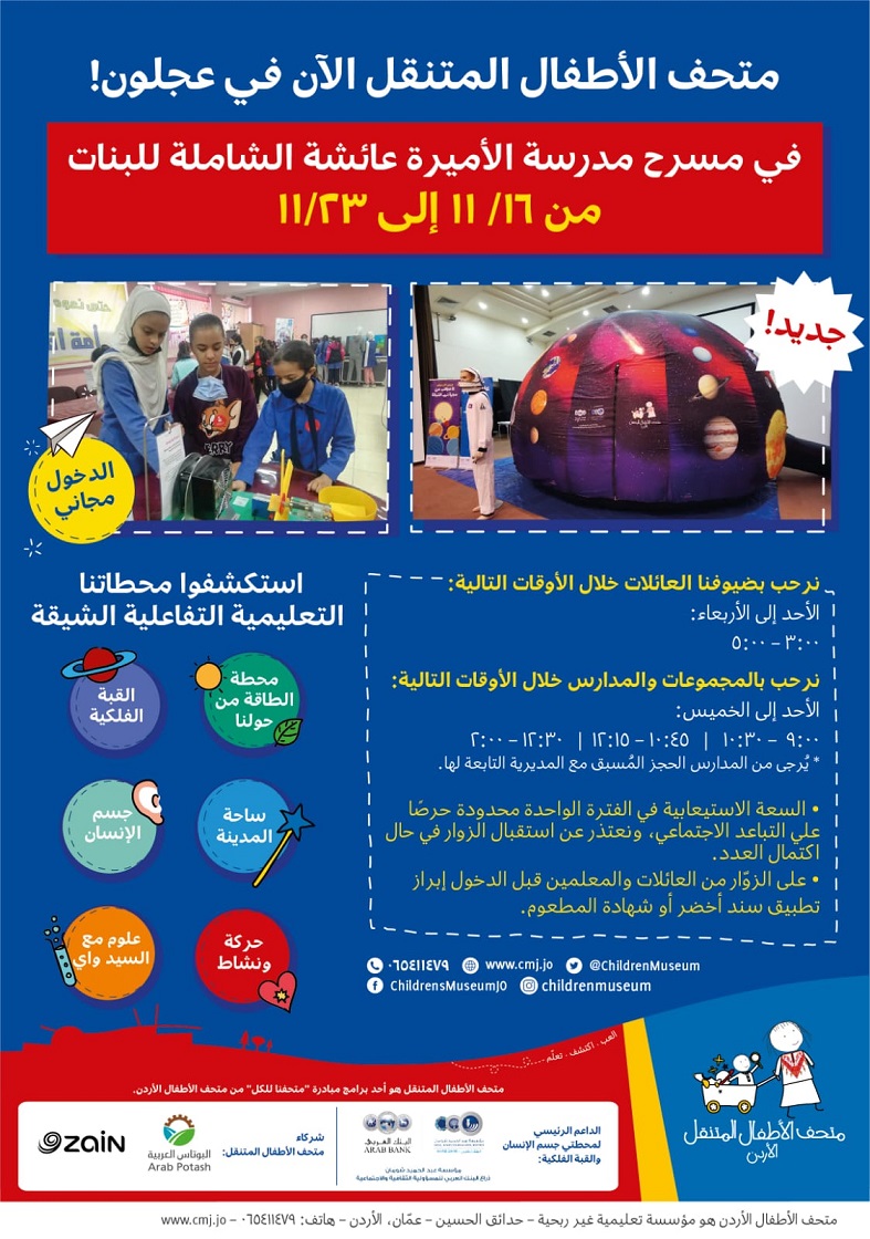 دعوة لحضور فعاليات متحف الأطفال المتنقل في عجلون
