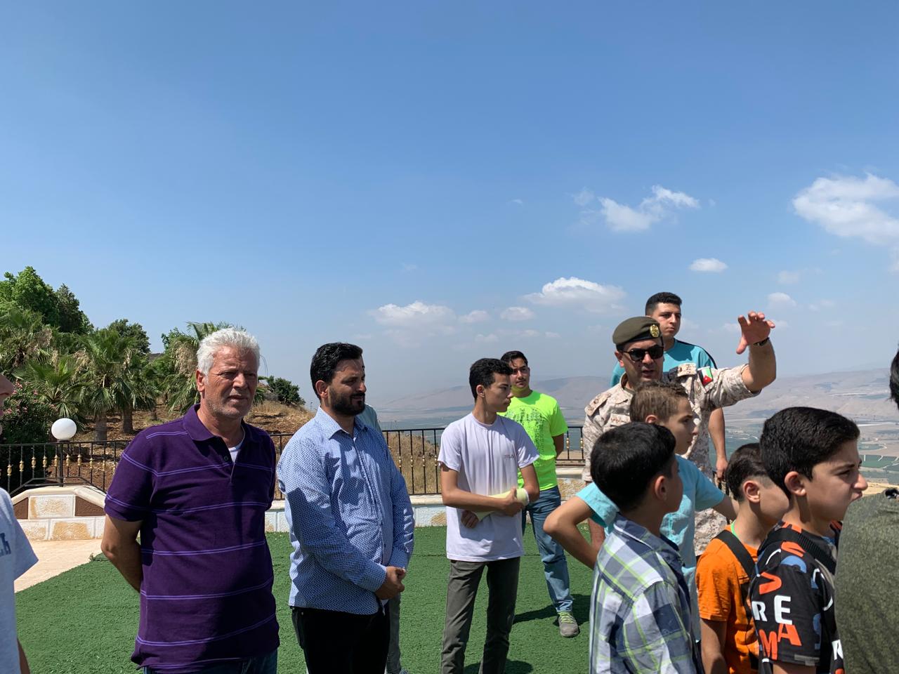 وكان باستقبال المشاركين عدد من ضباط القوات المسلحة في الموقع واستمع المشاركين الى شرح مفصل قدمه الرائد سيف الزواهرة عن تاريخ المنطقة التي تطل على الجولان السوري وبحيرة طبريا .