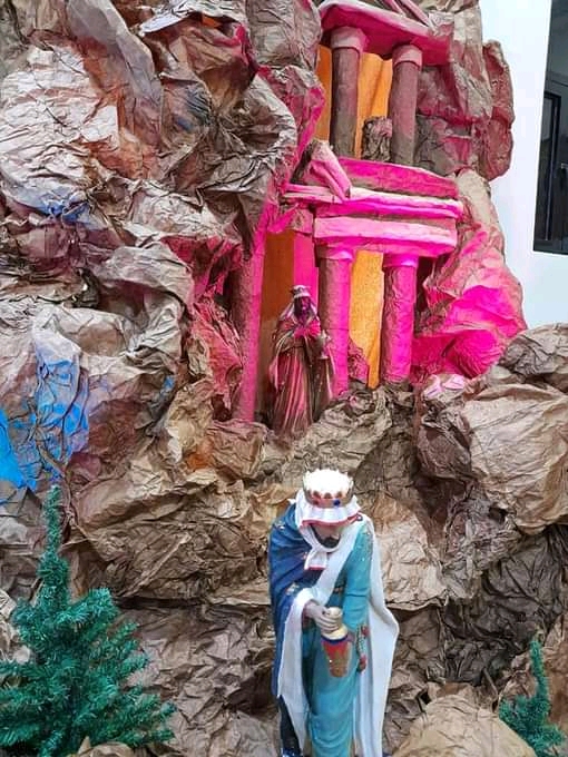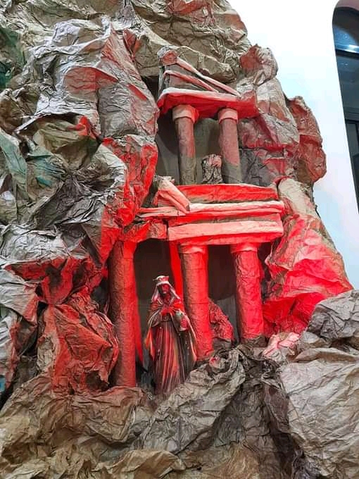شكل جديد للمغارة الميلادية في كنيسة الوهادنه مستوحى من مدينة البتراء الورديّة