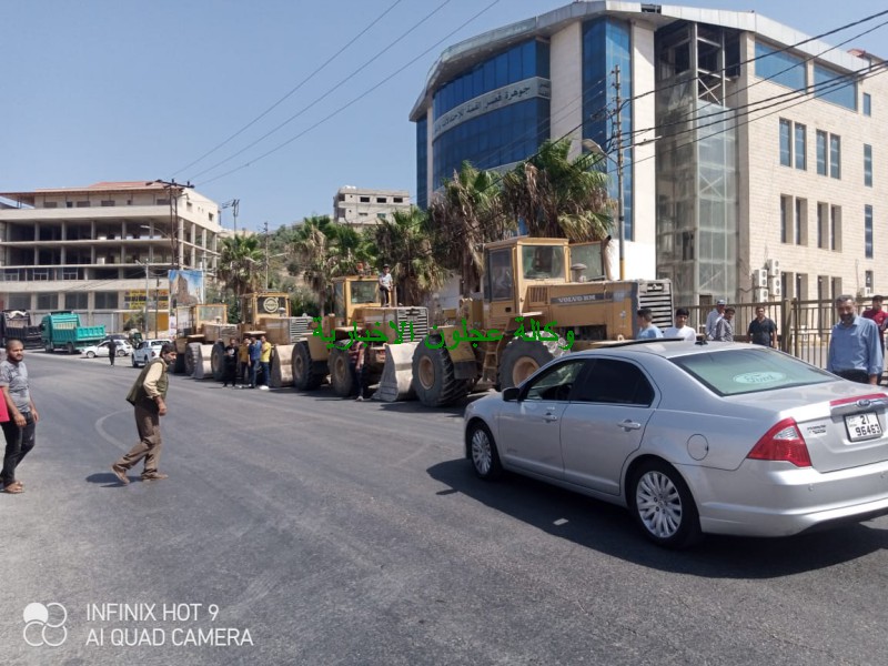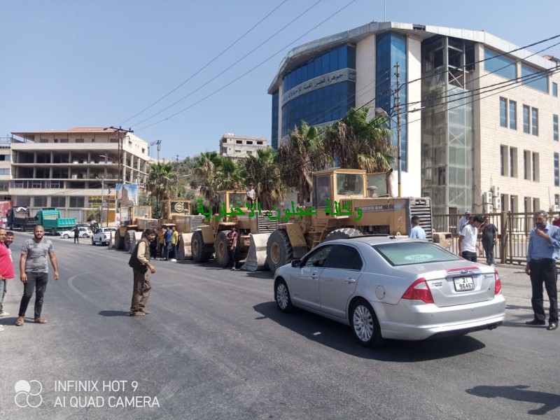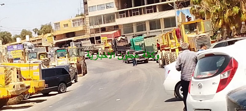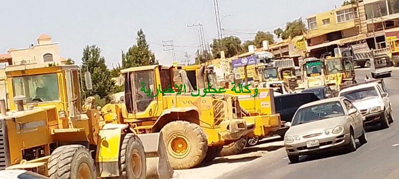 عجلون : إعتصام العشرات من أصحاب القلابات والحفارات واللودرات العاملين في المقالع الحجرية