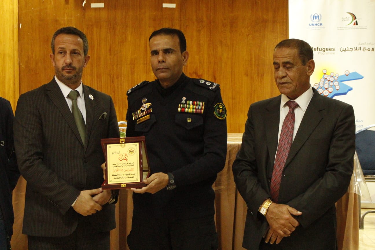 كرمت ” جريدة الدستور : ومديرية التربية والتعليم في محافظة عجلون خلال الاحتفال الذي أقيم معسكر الحسين للشباب برعاية رئيس بلدية عجلون الكبرى حمزه الزغول المشاركين والمشاركات في برنامج اسبوع التوعية الاعلامية والبيئية من مدارس المحافظة بدعم من مدارس درة الجبل المختلطة بحضور مديري التربية والشباب احمد ملكاوي محمد طبيشات ورئيس قسم الادارة الملكية لحماية البيئة والسياحة في اقليم الشمال المقدم عمر حماد ورئيسي مجلسي نقابة المهندسين الاردنيين والزراعيين خالد عنانزه ومعاويه عناب وصاحب مدارس درة الجبل المختلطة الدكتور بلال الزغول ومشرف معسكر الحسين للشباب عصام المومني ورؤساء المراكز الشبابية والأقسام في مديرية الشباب .