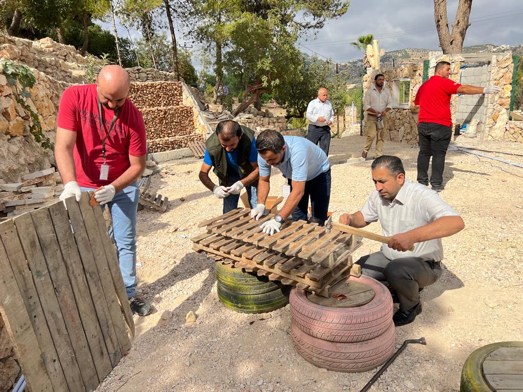 بعد ذلك تم تقسم المشاركين من الضمان الاجتماعي ومتطوعي الهلال الاحمر إلى مجموعات عمل حيث اشتمل النشاط على دهان اطاريف وطلاء جدران ومداخل الأحمر والعمل الميداني في الحديقة الامنة التي ينفذها الهلال الاحمر لخدمة رواده وزواره والمشاركين بالنشاطات المختلفة .