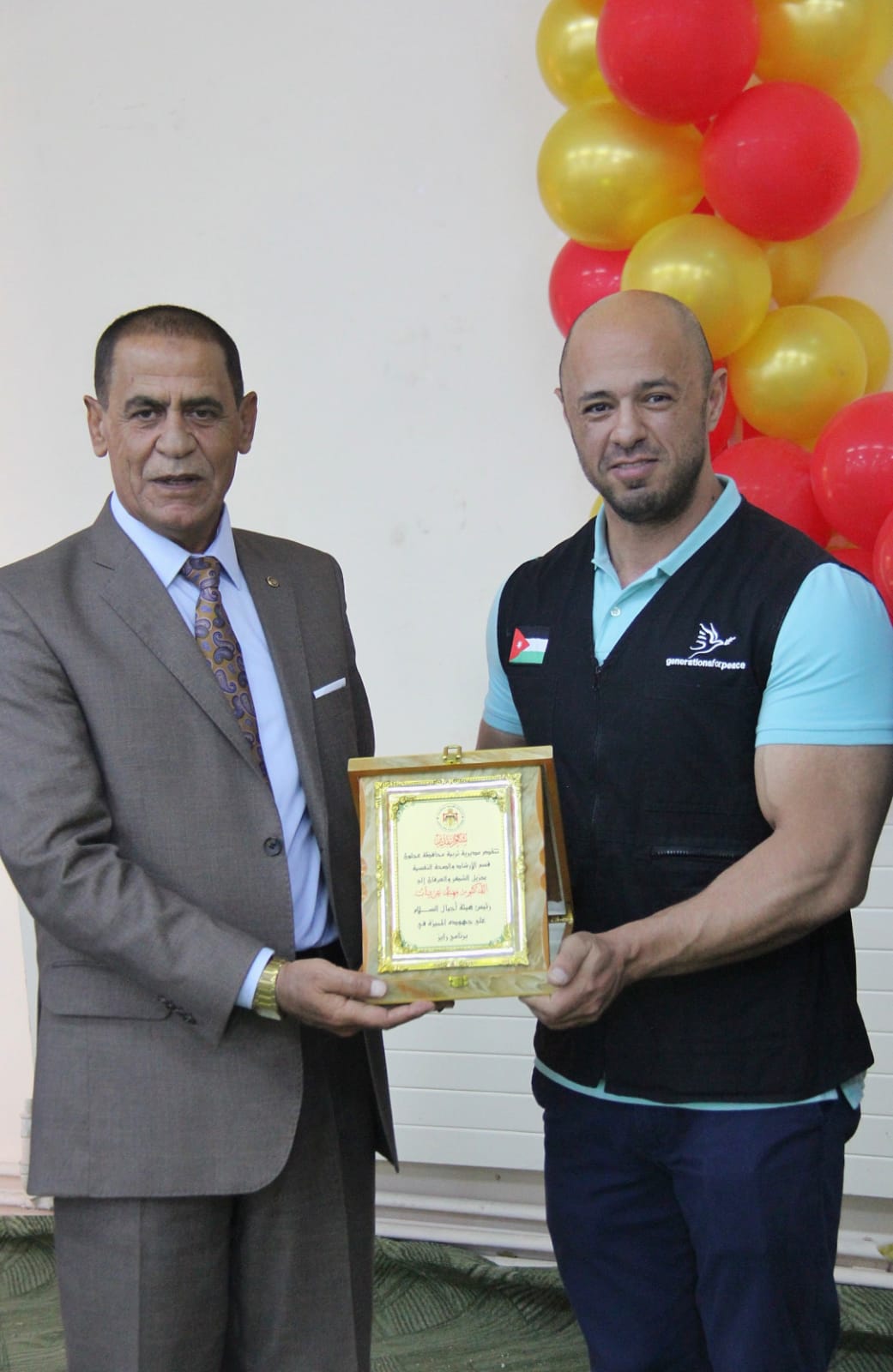 رعى مدير إدارة التعليم العام في وزارة التربية والتعليم نبيل حناقطه الاحتفال الذي إقامته مديرية تربية عجلون/ قسم الارشاد التربوي لتكريم المدارس المشاركة في مشروع هيئة أجيال السلام / برنامج رايز ( شباب قادر على الت التغير وممكّن اجتماعياً واقتصادياً )