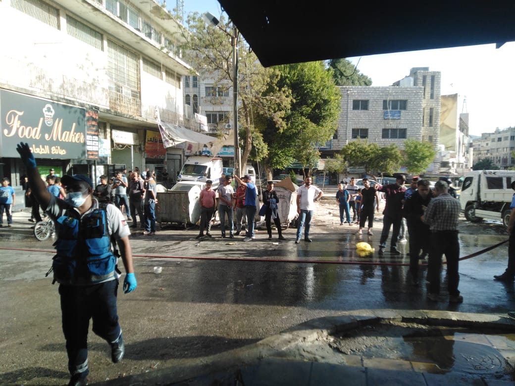 ويشار إلى أن المنطقة الواقعة خلف بنك الاردن والمحال التجارية بالقري منه مليئة بالاعشاب الجافة بصورة كثيفة عبوات الكرتون الفارغة ما يجعلها عرضة للحريق في اي لحظة كانت .