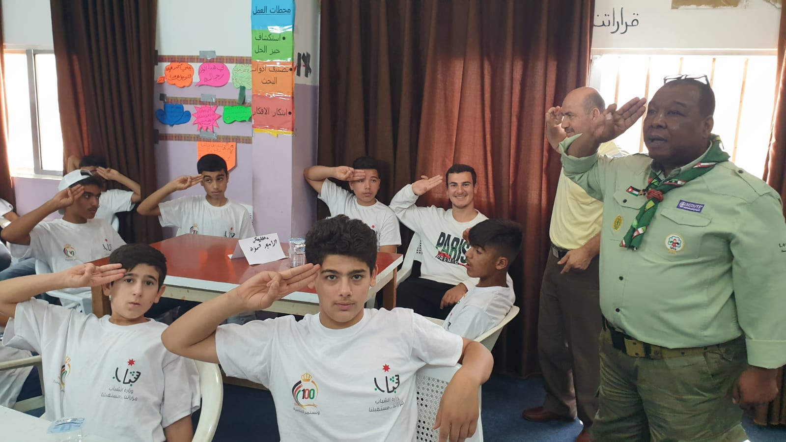 وفي سياق متصل اختتمت اليوم فعاليات معسكر التماسك الإجتماعي بمركز شابات سهل حوران ومعسكر الكشافة والمرشدات والعمل التطوعي بمركز شباب الطره والذي استمر لمدة يومين متواصلين بمشاركة ٢٥ مشارك ومشاركة من المراكز الشبابية ضمن الفئة العمرية (١٥ – ١٧) و( ١٨- ٢٤ )
