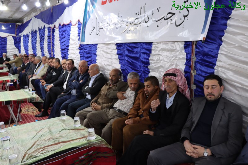 عجلون الإخبارية: أقامت عشيرة الحمادات في عنجرة مساء اليوم الخميس حفل تكريم كبير تخلله إقامة وجبة عشاء تكريما للفائزين في الإنتخابات البلدية واللامركزية من منطقة عنجرة والصفا ورئيس بلدية كفرنجة وذلك بحضور النائب الدكتور فراس القضاه ونواب سابقين وأكاديميين وعدد كبير من وجهاء وأبناء مدينة عنجرة وكفرنجة وعدد من مناطق المحافظة الأخرى إضافة الى رئيس بلدية عجلون الكبرى حمزه الزغول ورئيس بلدية كفرنجة فوزات الفريحات وأعضاء مجلس المحافظة وأعضاء مجلس بلدية عجلون المنتخبين عن منطقة عنجرة والصفا .