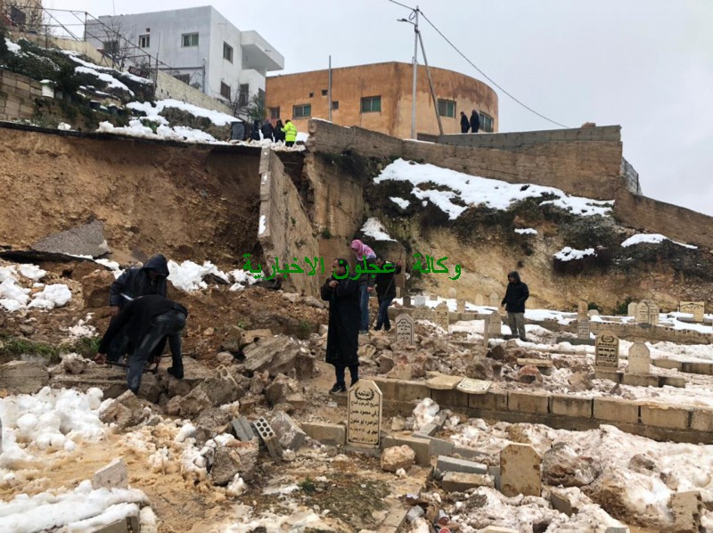 عجلون الإخبارية- ناشد سكان المنطقة المحيطة بالمقبرة الإسلامية في مدينة عنجرة محافظ عجلون سلمان النجادا ورئيس لجنة بلدية عجلون الكبرى محمد أبو رمان سرعة التدخل لمعالجة الإنهيار الذي حصل في شهر شباط من العام الحالي لسور المقبرة الإسلامية بسبب تشبع المنطقة بمياه الأمطار ، ما أدى الى إنهيار السور بالكامل المحيط بالمقبرة إضافة الى إنهيار الشارع المحاذي للمقبرة وتضرر عدد من القبور الموجودة بالمقبرة .