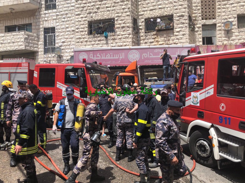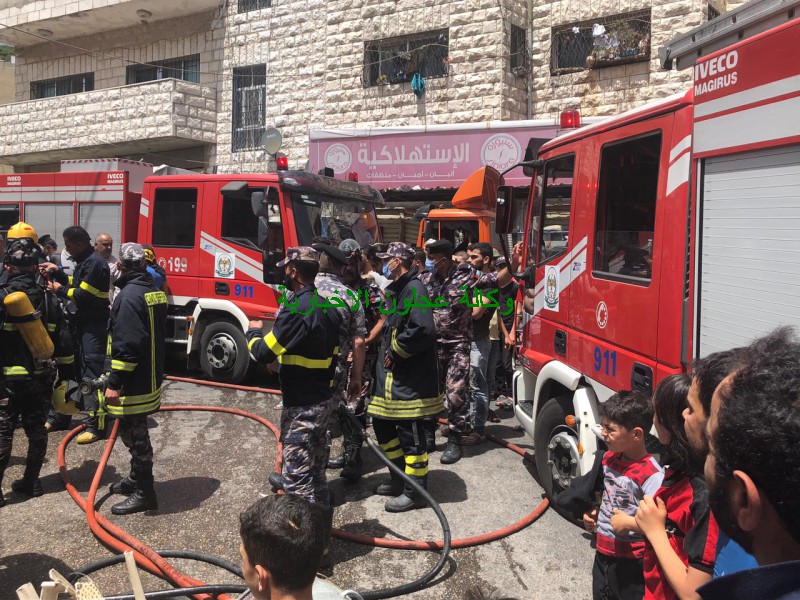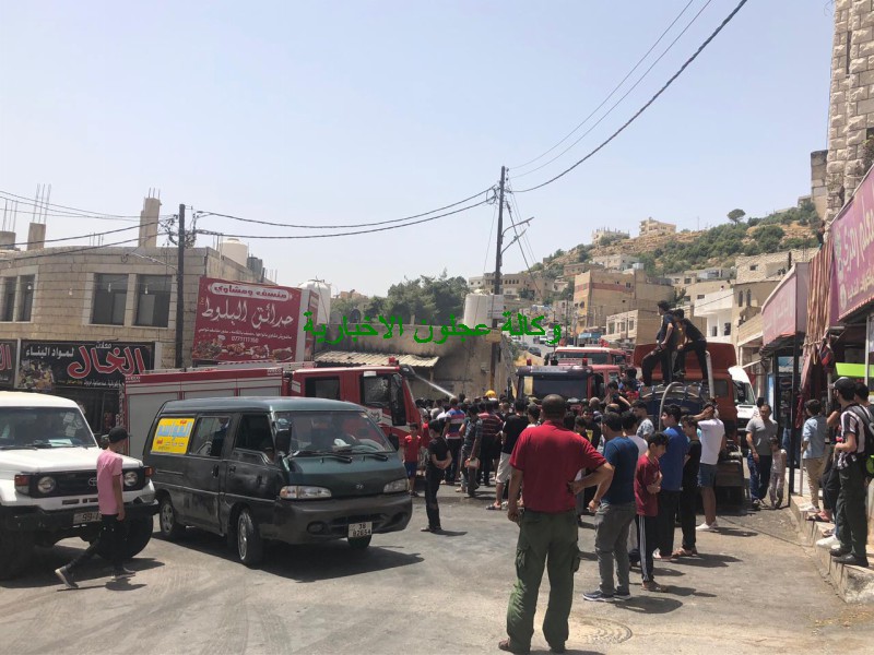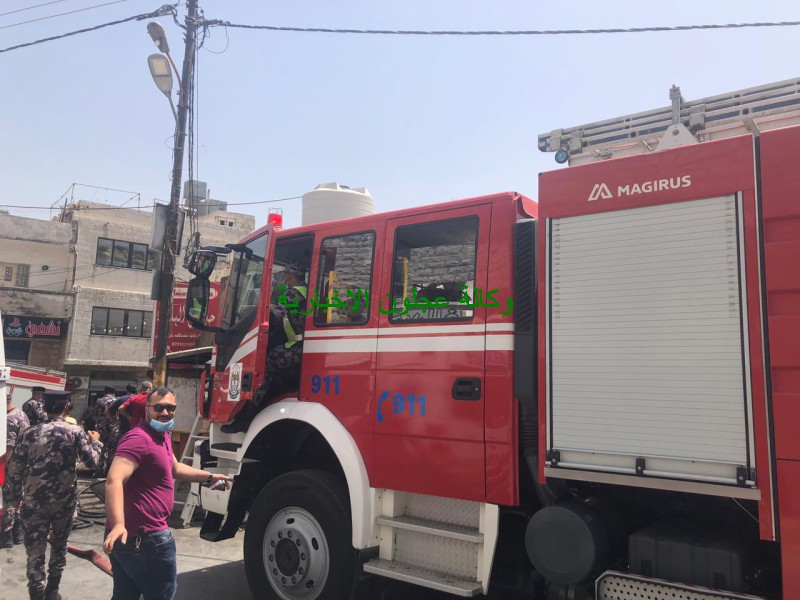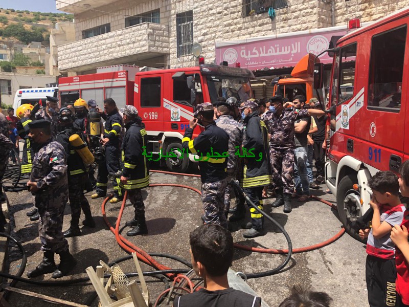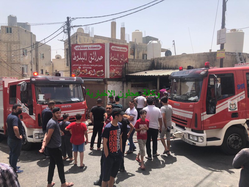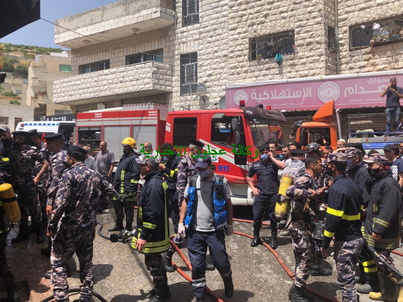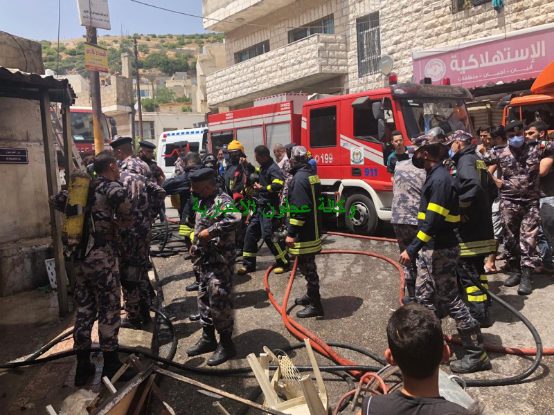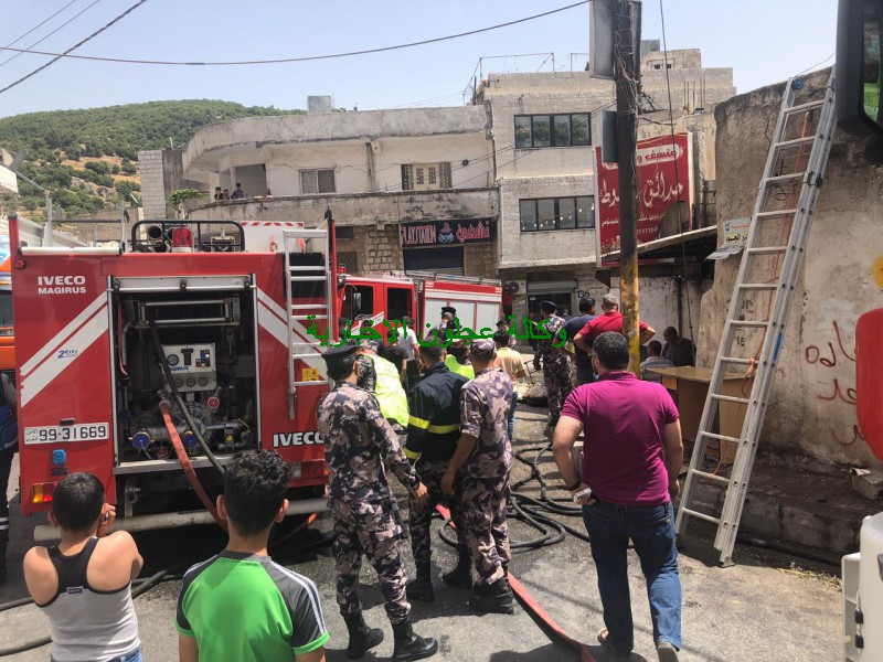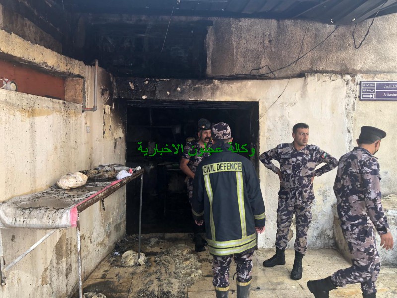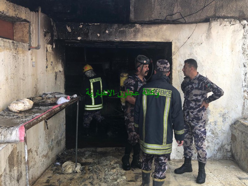 كوادر دفاع مدني عجلون تتعامل مع حريق مخبز في بلدة عين جنا