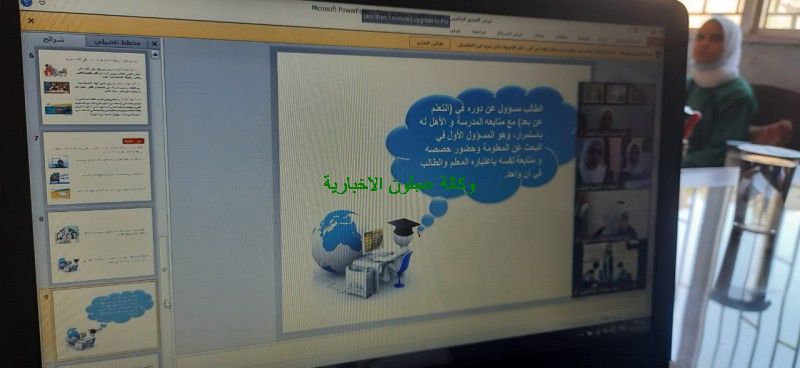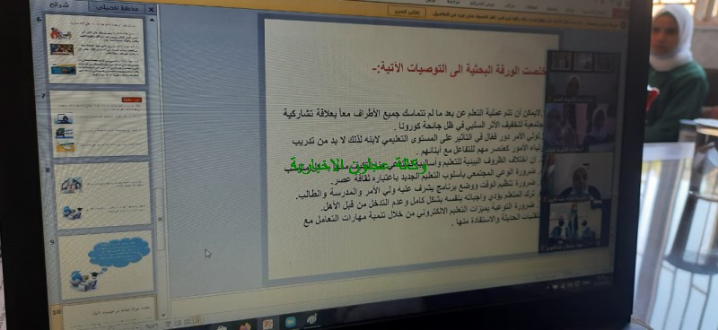 - وقدمت المحور الخامس مدرسة الوهادنه الثانوية الشاملة للبنات حولدور المدرسة وأولياء الأمور والطلبة في عملية التعلم عن بعد
