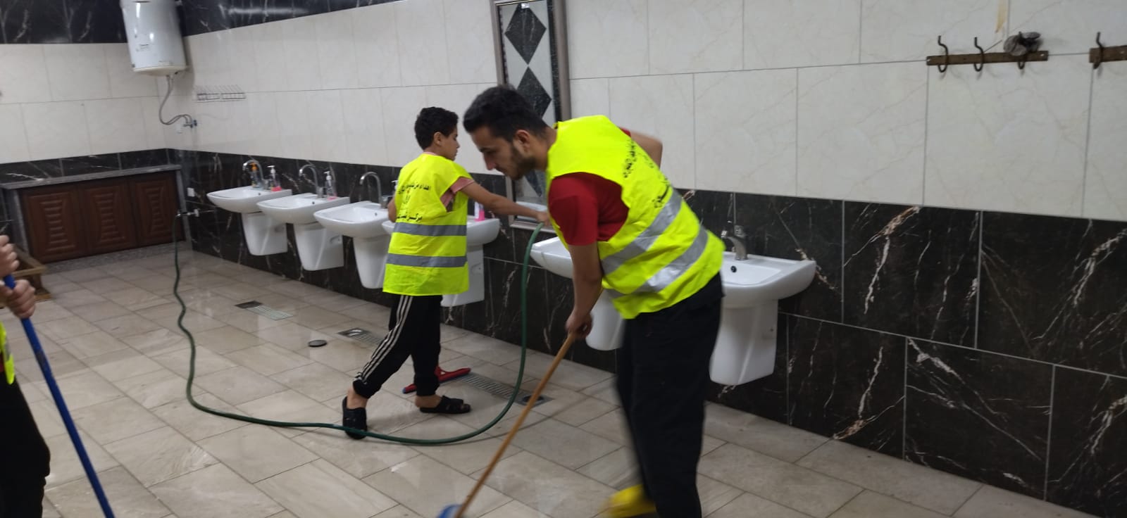 نفذ مركز شباب عنجرة مبادرة تطوعية لتنظيف مسجد المثنى بن الحارثة بمشاركة 15 شابا