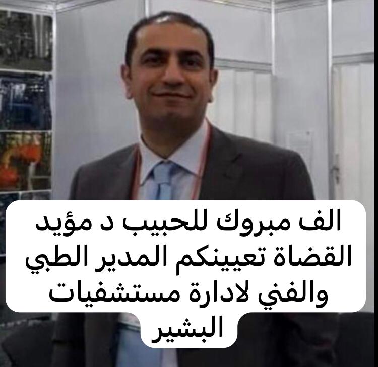 مبارك للدكتور مؤيد القضاة لتوليه منصب المدير الطبي والفني لادارة مستشفيات البشير