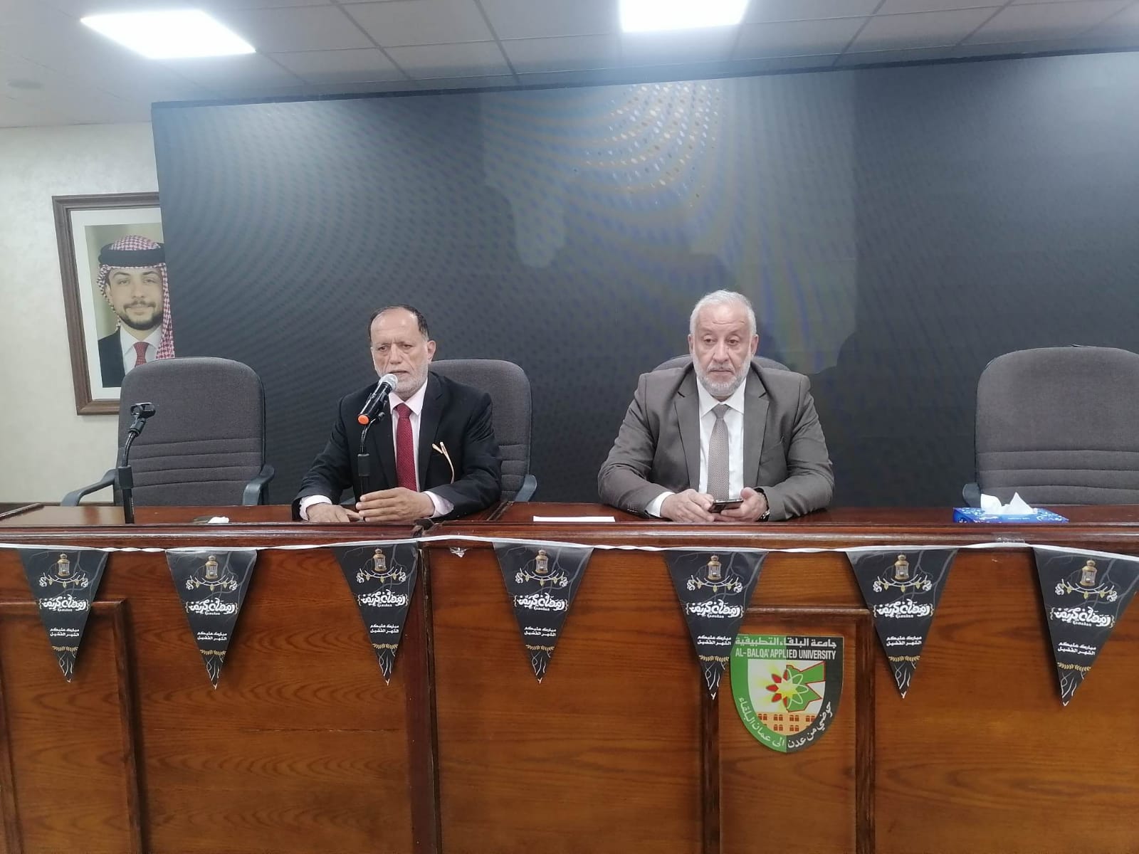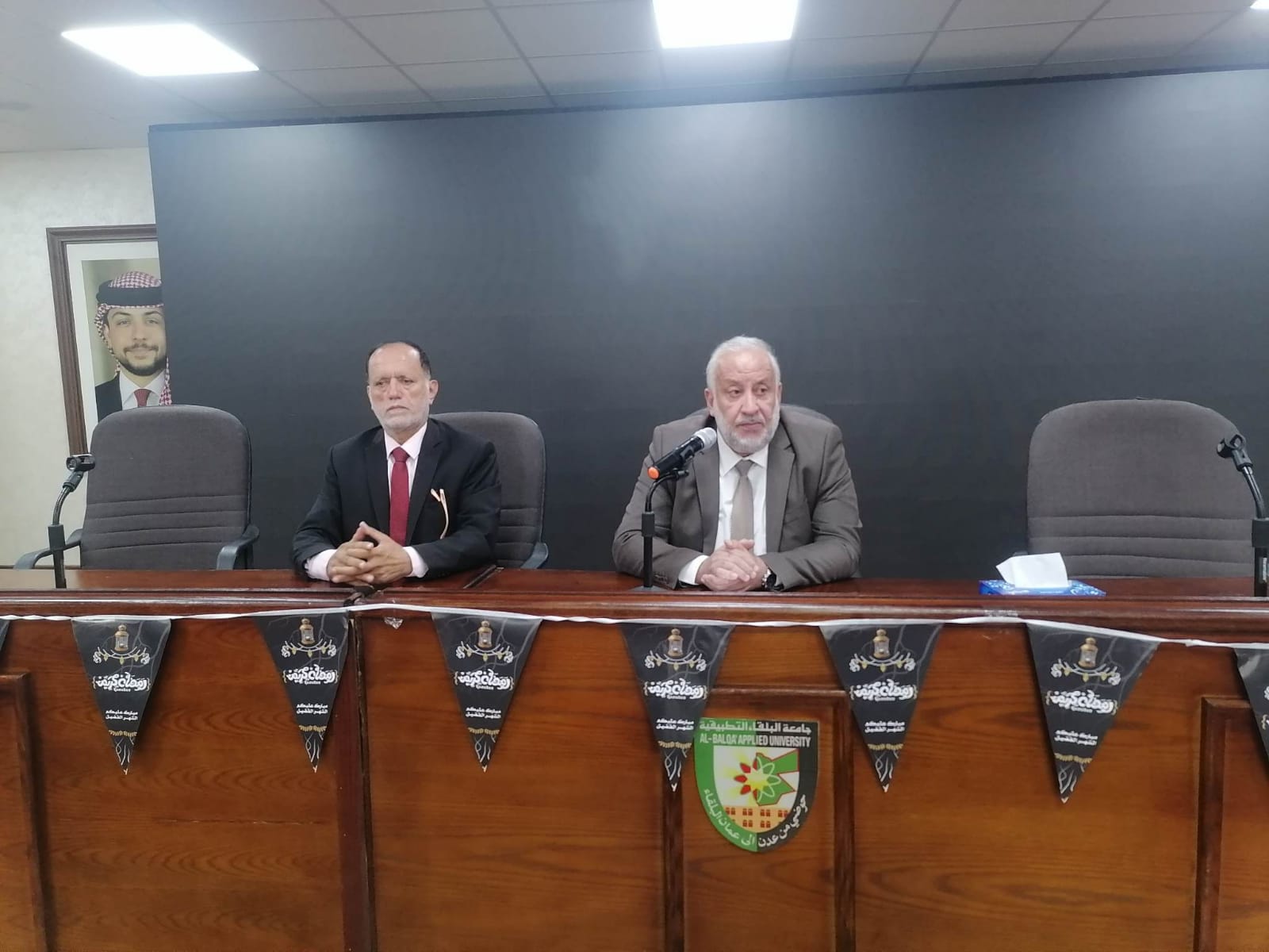نظمت كلية عجلون الجامعية /جامعة البلقاء التطبيقية محاضرة دينية بعنوان( نفحات إيمانية في فضائل شهر رمضان) ألقاها فضيلة الدكتور أسامه الفقير عميد كلية الشريعة في جامعة اليرموك بحضورنائب العميد الدكتور أيمن فريحات مندوبا عن عميد الكلية الأستاذ الدكتور وائل الربضي و مساعد العميد للشؤون الطلابية الدكتورة منتهى المومني واعضاء الهيئتين التدريسية والادارية وطلبة الكلية.